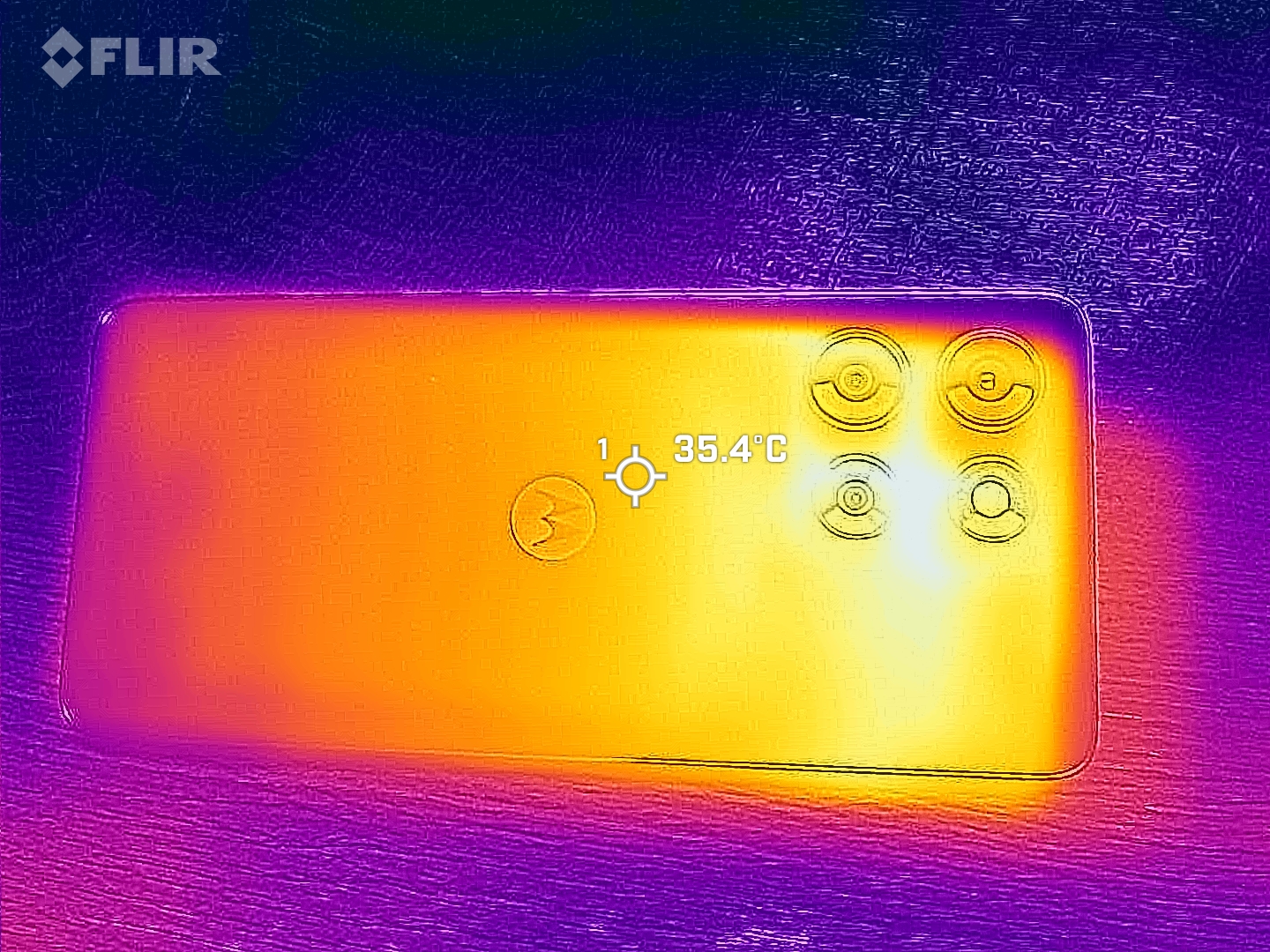 (-) A temperatura máxima no lado superior é 48.6 °C / 119 F, em comparação com a média de 35.2 °C / 95 F , variando de 21.9 a 247 °C para a classe Smartphone.
