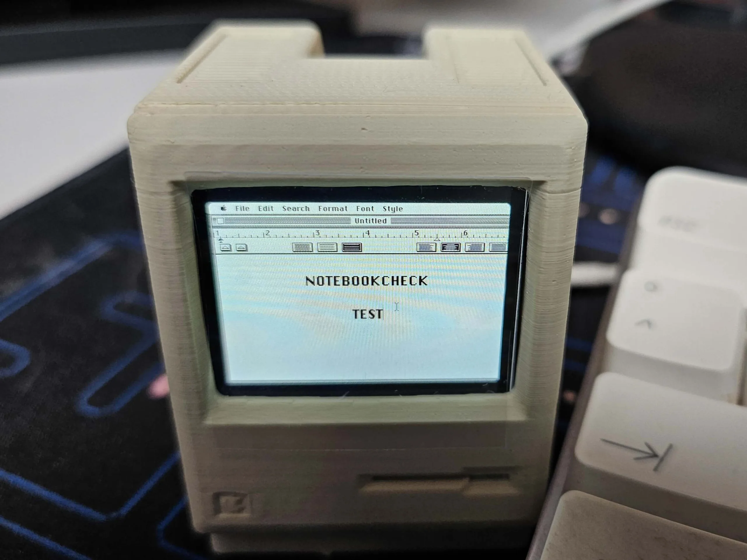 A carcaça do Pico Mac Nano é impressa em 3D e feita de bioplástico PLA. Esse material pode amolecer em temperaturas acima de 60 °C, portanto, é importante não expor o dispositivo a calor excessivo. Um módulo de som é opcional para integrar o som típico de inicialização, assim como um módulo de bateria para usar o Pico Mac Nano como fonte de alimentação sem um cabo USB. Decidi não usar nenhum deles. Para iniciar o Micro Macintosh, basta conectar um cabo USB-C na porta traseira e, após um breve processo de inicialização, o System 3.2 está pronto para funcionar.