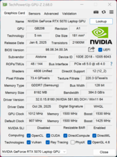 | Schenker XMG Fusion 16 M25 Ultra 9 275HX, GeForce RTX 5070 Laptop, Samsung 9100 Pro 2 TB, OLED, 2880x1800, 16" | Lenovo Legion Pro 5 16IAX10, RTX 5070 Ultra 7 255HX, GeForce RTX 5070 Laptop, SK Hynix HFS001TEJ9X115N, OLED, 2650x1600, 16" | Schenker XMG Core 16 M25 Ryzen AI 9 HX 370, GeForce RTX 5070 Laptop, Samsung 990 Pro 2 TB MZVL72T0HDLB, IPS, 2560x1600, 16" | Asus TUF Gaming A16 FA608UP R7 260, GeForce RTX 5070 Laptop, Western Digital PC SN5000S SDEQNSJ-1T00, IPS, 2560x1600, 16" | MSI Crosshair 16 HX AI D2XWGKG Ultra 9 275HX, GeForce RTX 5070 Laptop, Micron 2500 1TB MTFDKBA1T0QGN, IPS, 2560x1600, 16" | Aorus Elite 16 AE6H Ultra 9 275HX, GeForce RTX 5070 Laptop, Gigabyte AG470S1TB-SI B10, IPS, 2560x1600, 16" | Gigabyte Gaming A16 GA6H i7-13620H, GeForce RTX 5070 Laptop, Kingston OM8PGP41024Q-A0, IPS, 2560x1600, 16" | Média NVIDIA GeForce RTX 5070 Laptop | Média da turma Gaming | |