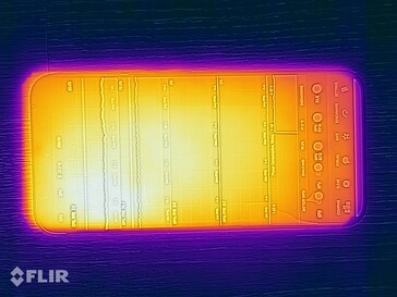 (-) A temperatura máxima no lado superior é 45.9 °C / 115 F, em comparação com a média de 35.2 °C / 95 F , variando de 21.9 a 247 °C para a classe Smartphone.