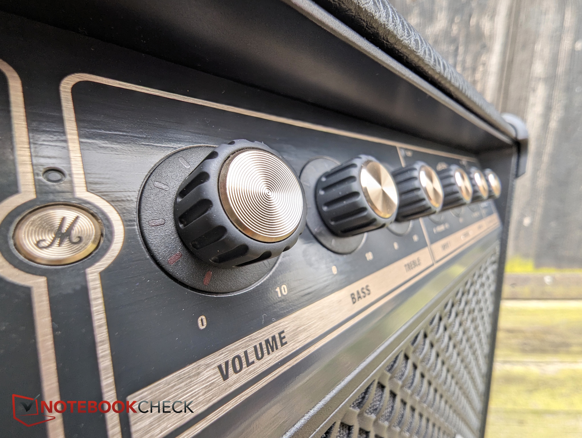 Para um alto-falante Marshall, a faixa de ajuste de graves por meio do botão é um pouco limitada. Raramente sentimos a necessidade de reduzi-los significativamente e, em algumas faixas, na verdade, queríamos um pouco mais de graves sem sacrificar os agudos - especialmente em volumes baixos a médios. Os agudos, por outro lado, permanecem claros quando aumentados sem se tornarem ásperos.