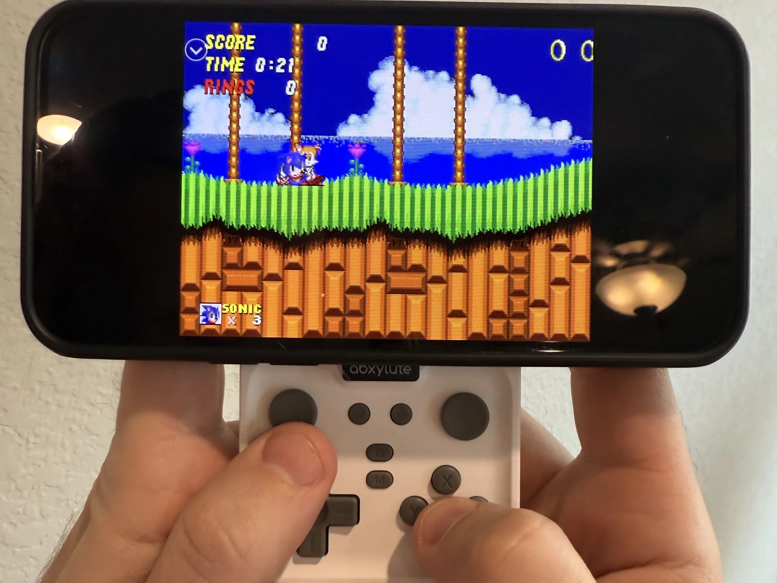 As entradas são um pouco confusas. Elas são muito ágeis e precisas - ao jogar títulos retrô como Contra para NES, as diagonais foram registradas perfeitamente, e o D-Pad funciona bem em jogos de luta como Street Fighter 2. As entradas foram registradas perfeitamente bem, sem pressionamentos fantasmas. No entanto, o D-Pad e os botões de face têm um feedback mole. Pessoalmente, prefiro botões nítidos e com cliques (como os do controle Backbone One). O D-Pad, em particular, parece um pouco barato, mas funciona bem nos jogos.