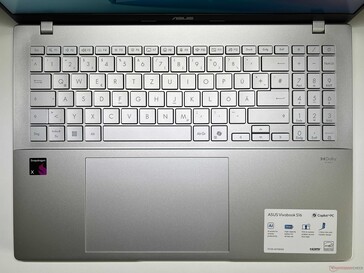 A Asus combina uma tampa de alumínio com uma unidade de base de plástico no Vivobook S16, de modo que as superfícies não têm problemas com impressões digitais. No geral, o chassi - que pode ser adquirido nas opções prata ou cinza escuro - causa uma impressão de alta qualidade com boa estabilidade.