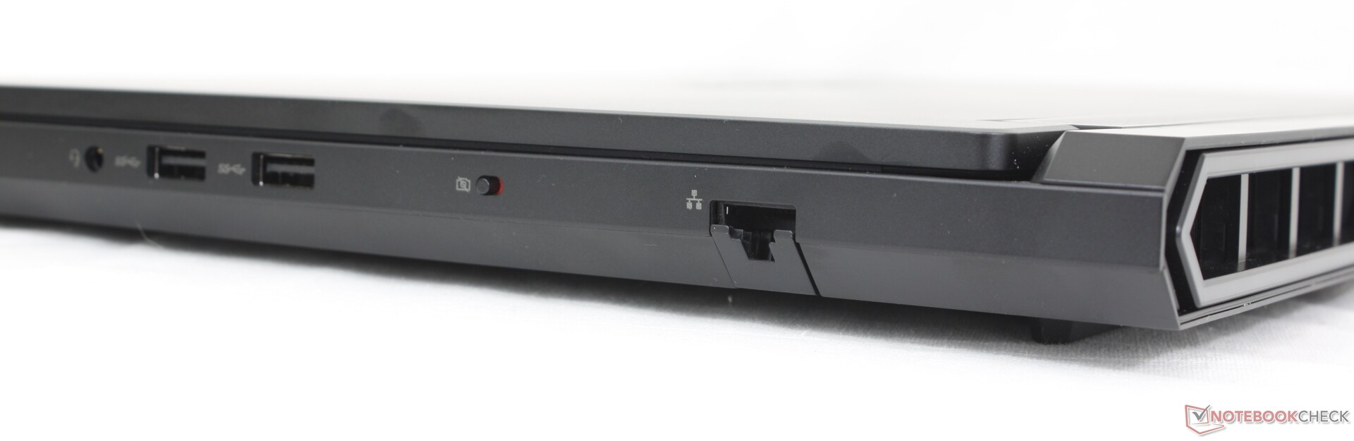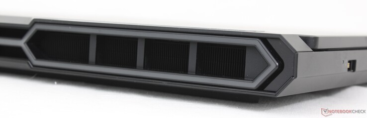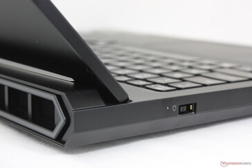 As opções e o posicionamento das portas foram completamente revisados em comparação com a versão do ano passado Legion 9 16IRX9 ou o Legion 7 16 G9. O leitor de cartão SD integrado e a terceira porta USB-C foram eliminados em favor de uma porta RJ-45 e uma porta USB-A adicional. Desta vez, não há portas na parte traseira para facilitar o acesso.