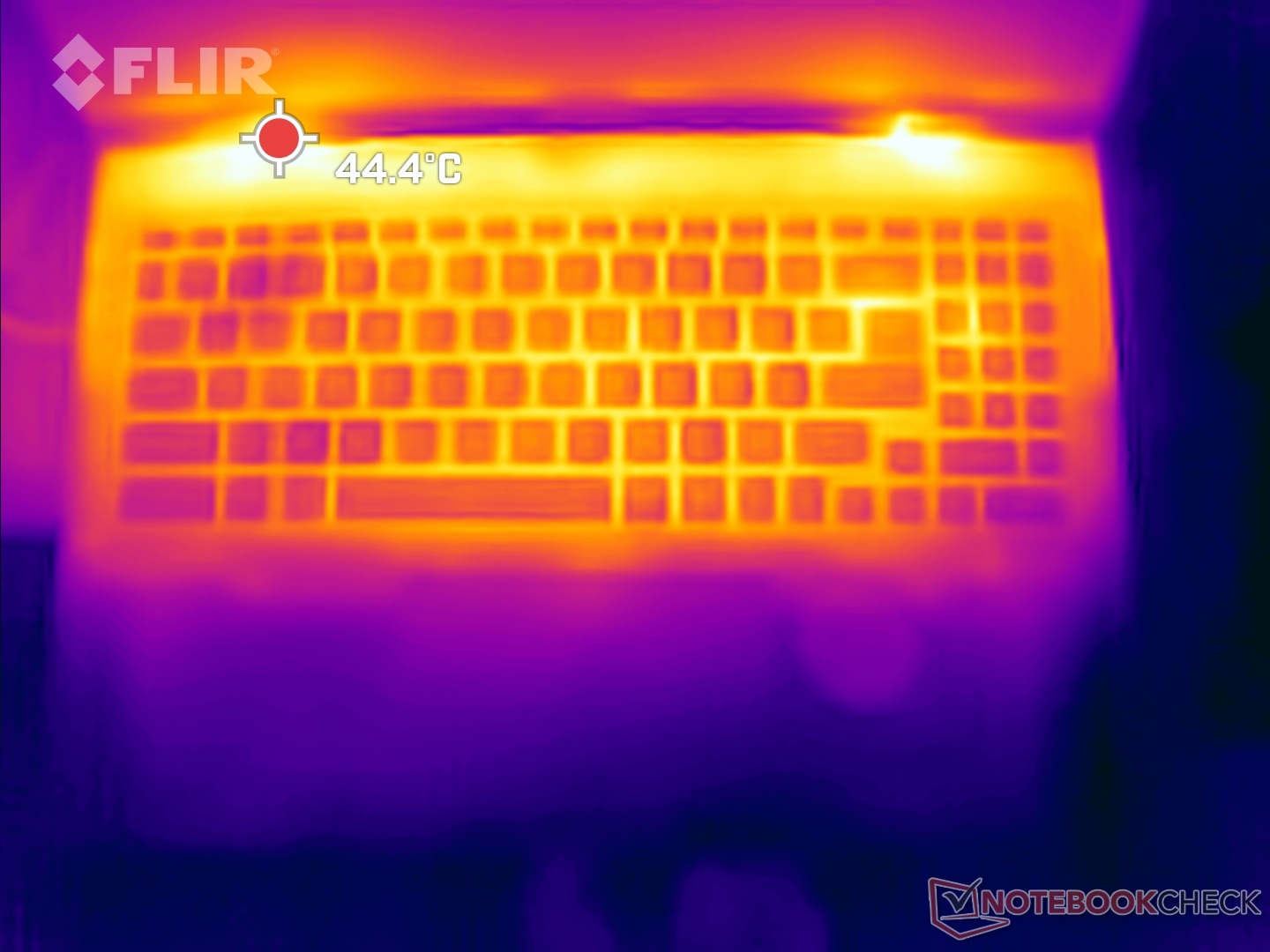 As áreas WASD, touchpad e apoio para as mãos permaneceram relativamente frias durante os testes de estresse.