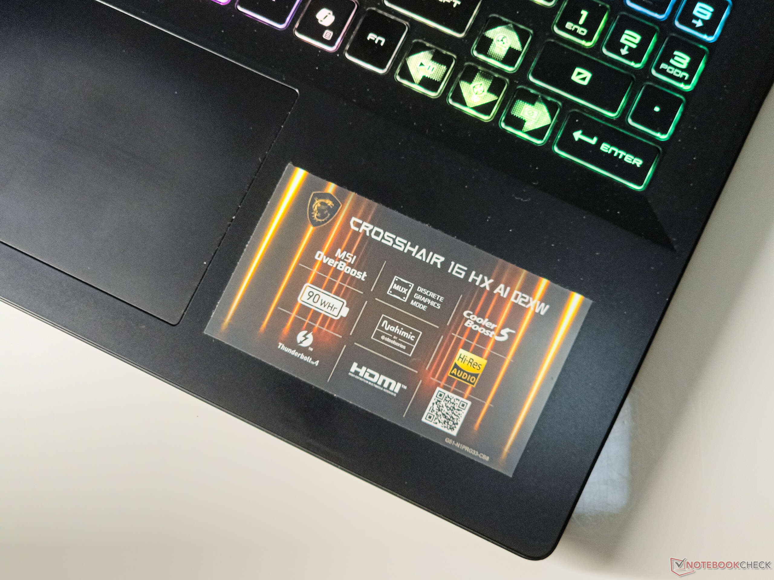 - As impressões gerais do Notebookcheck sobre o MSI Crosshair 16 HX AI
