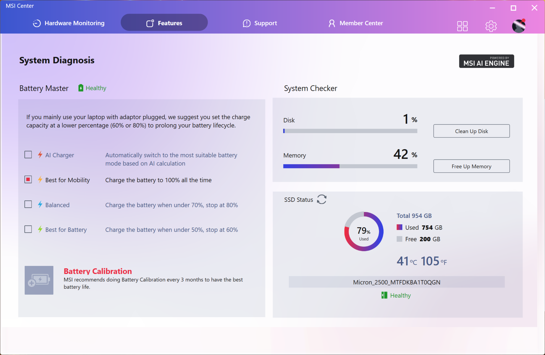 O tempo de funcionamento da bateria próximo a 12 horas ou mais é possível no modo ECO-Silent com o MSHybrid e a taxa de atualização definida para 60 Hz.