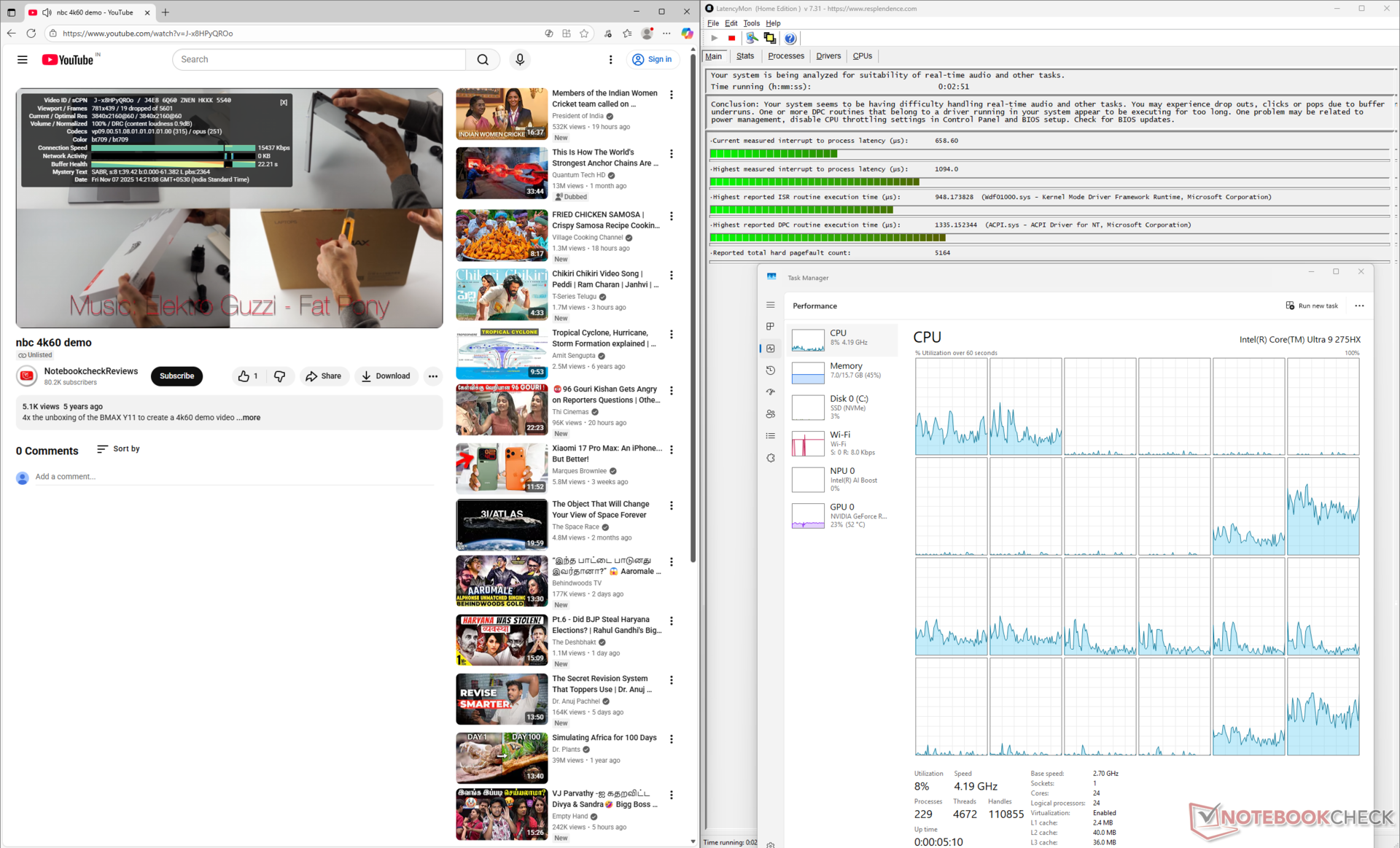 - Desempenho: O Core Ultra 9 275HX e a RTX 5070 não surpreendem