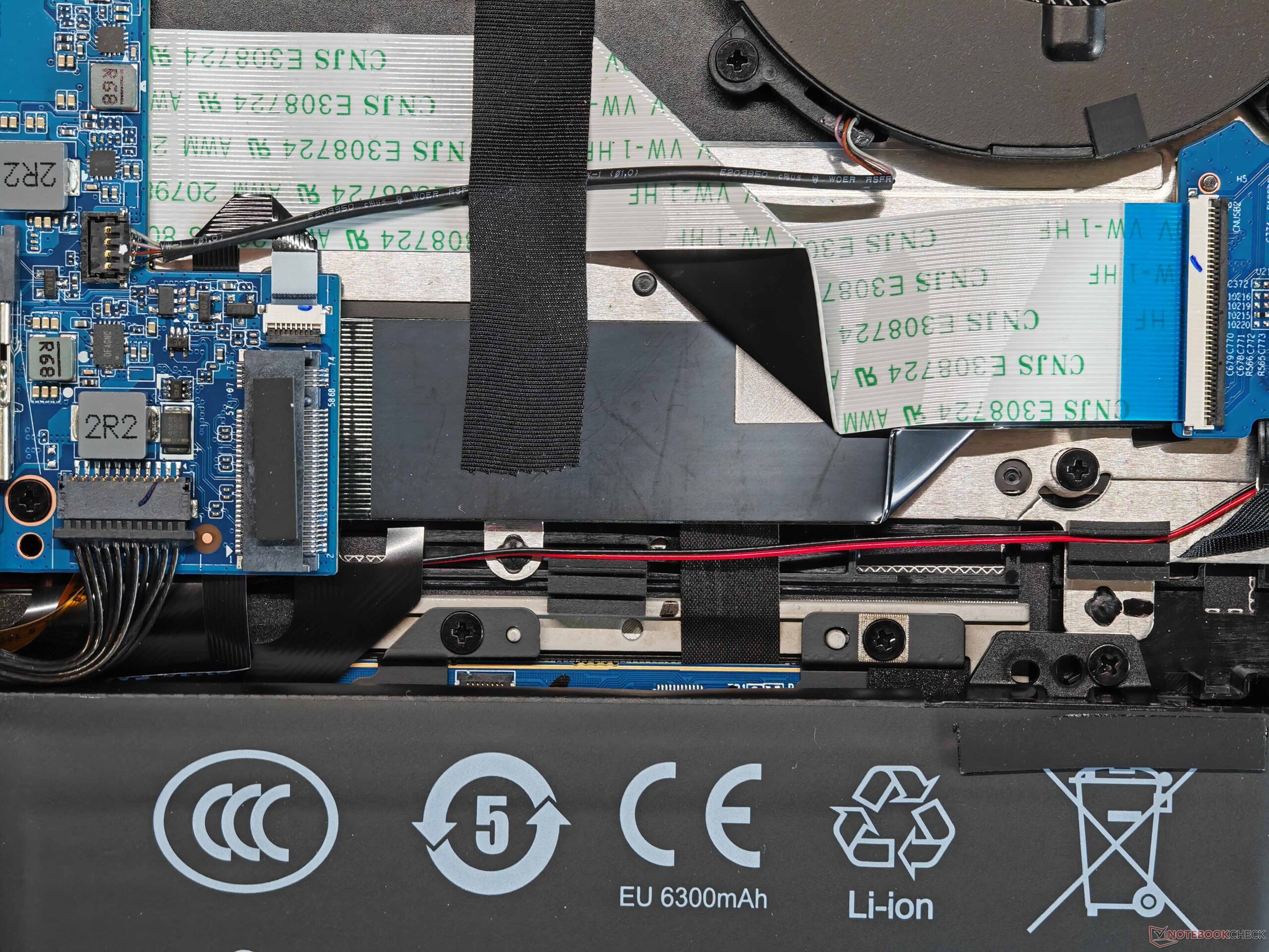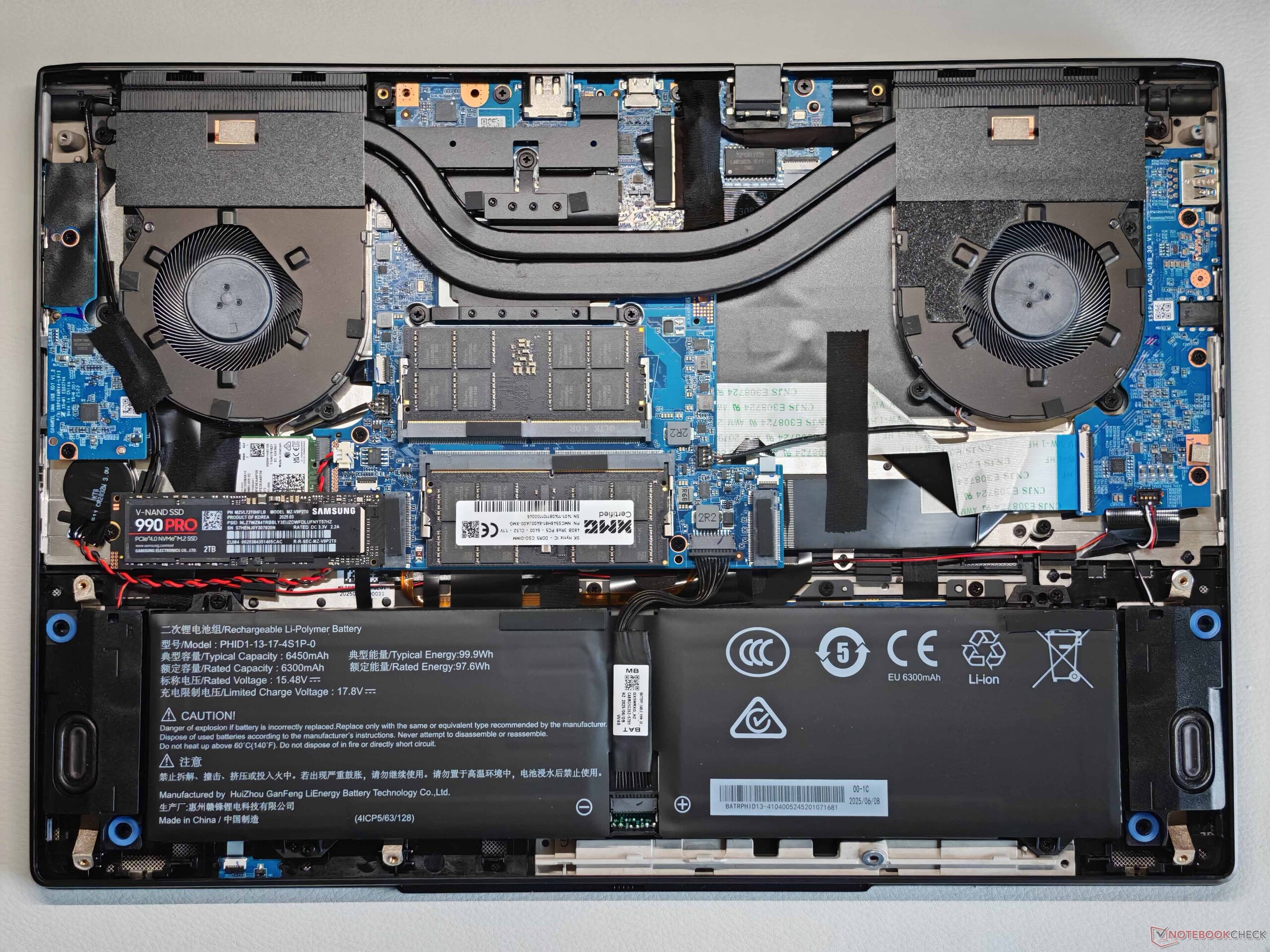 As opções de manutenção são muito boas, com suporte para dois slots SO-DIMM, dois SSDs e um módulo WLAN substituível; um módulo Wi-Fi 7 também está disponível. Não encontramos problemas com as taxas de transferência durante nossos testes. O Evo 15 oferece uma ampla variedade de portas, incluindo Thunderbolt 4, HDMI e um leitor de cartões de tamanho normal. A webcam de 1080p (incluindo um obturador de privacidade e um módulo IR) é adequada para a finalidade pretendida.