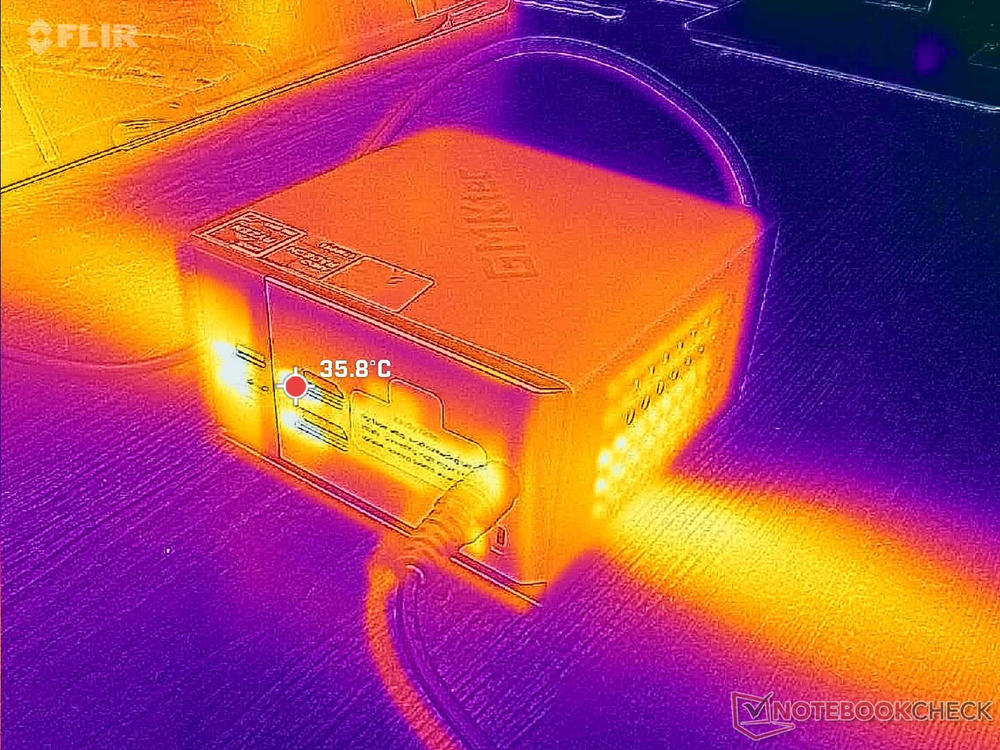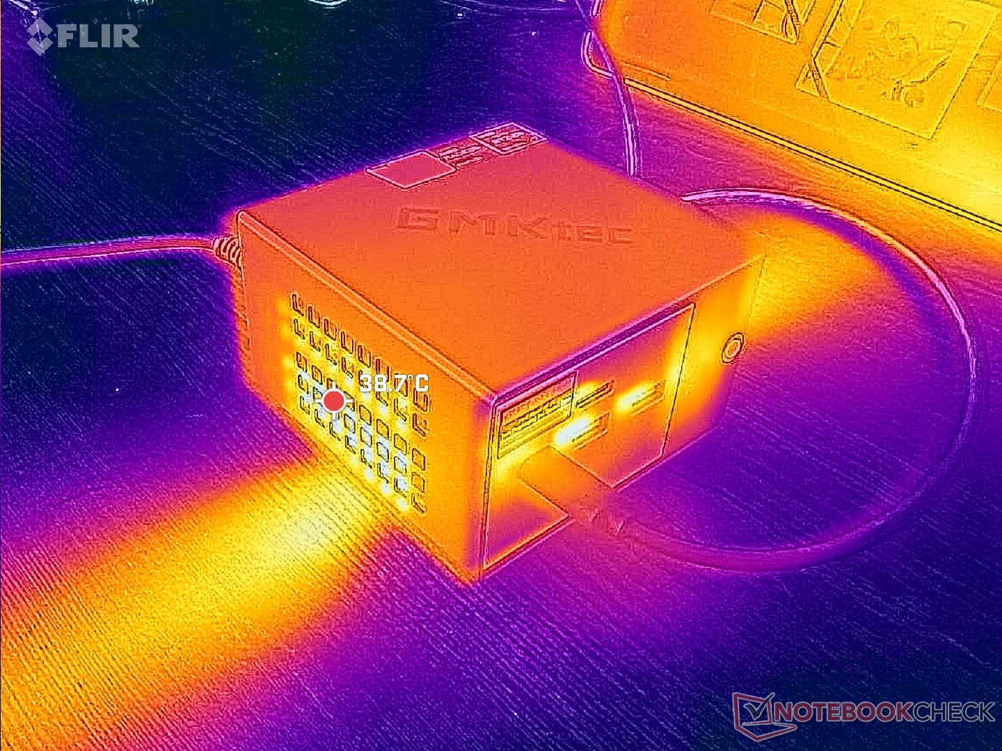 (+) A temperatura máxima no lado superior é 28.4 °C / 83 F, em comparação com a média de 35.5 °C / 96 F , variando de 20.6 a 69.5 °C para a classe Mini PC.