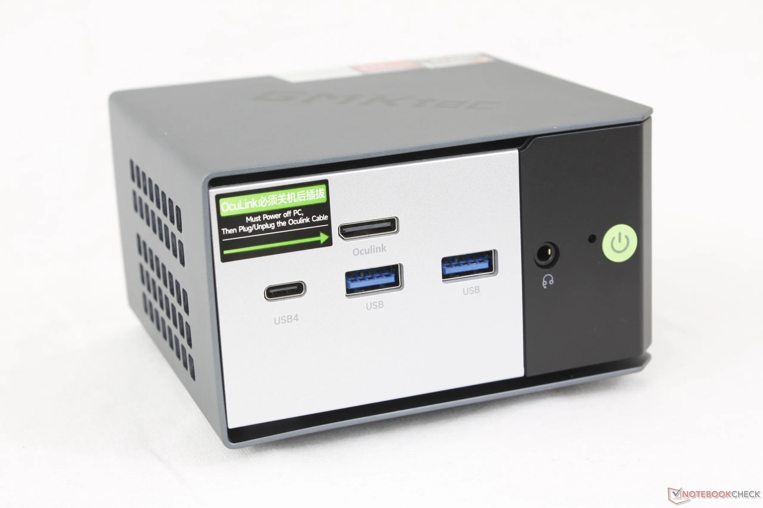 O chassi é idêntico ao do EVO-X1 do ano passado, que continua a ser um dos menores minicomputadores da linha da GMKtec. As opções de portas não mudaram, incluindo a importante porta Oculink, que ajuda a distinguir o modelo da maioria dos mini PCs concorrentes.