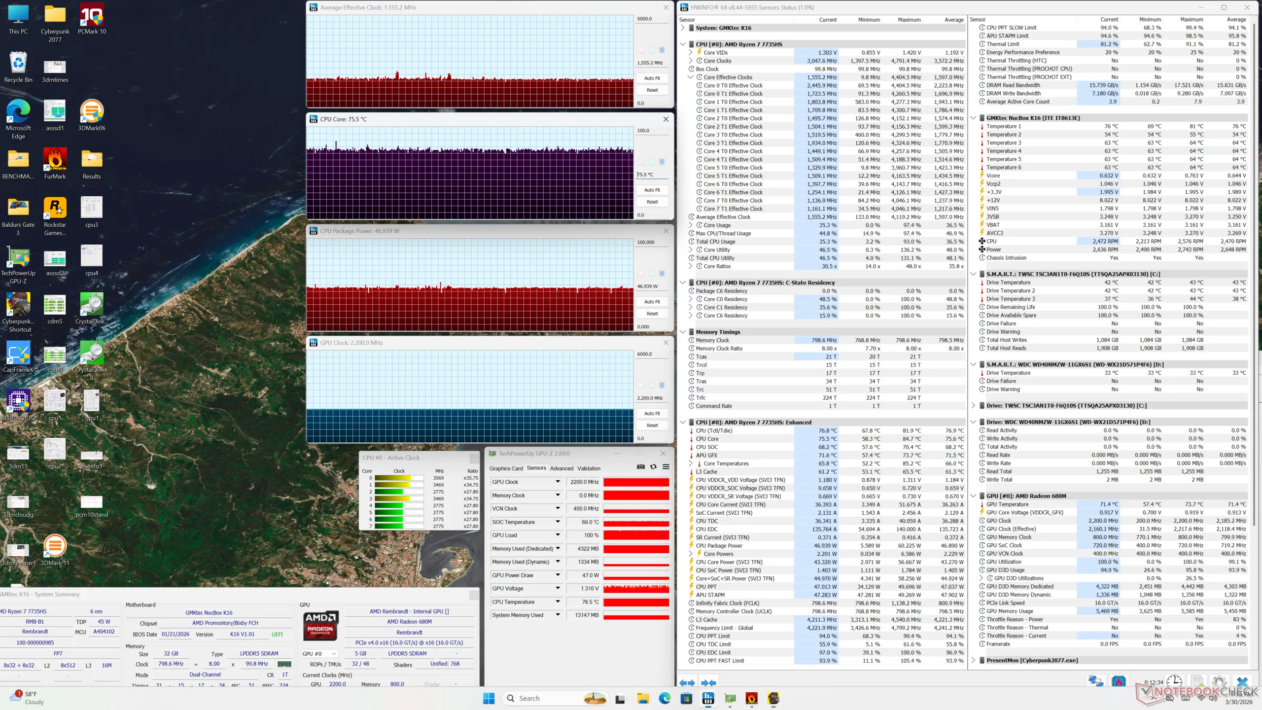 | Média AMD Ryzen 7 7735HS (1758 - 2355, n=17) | |