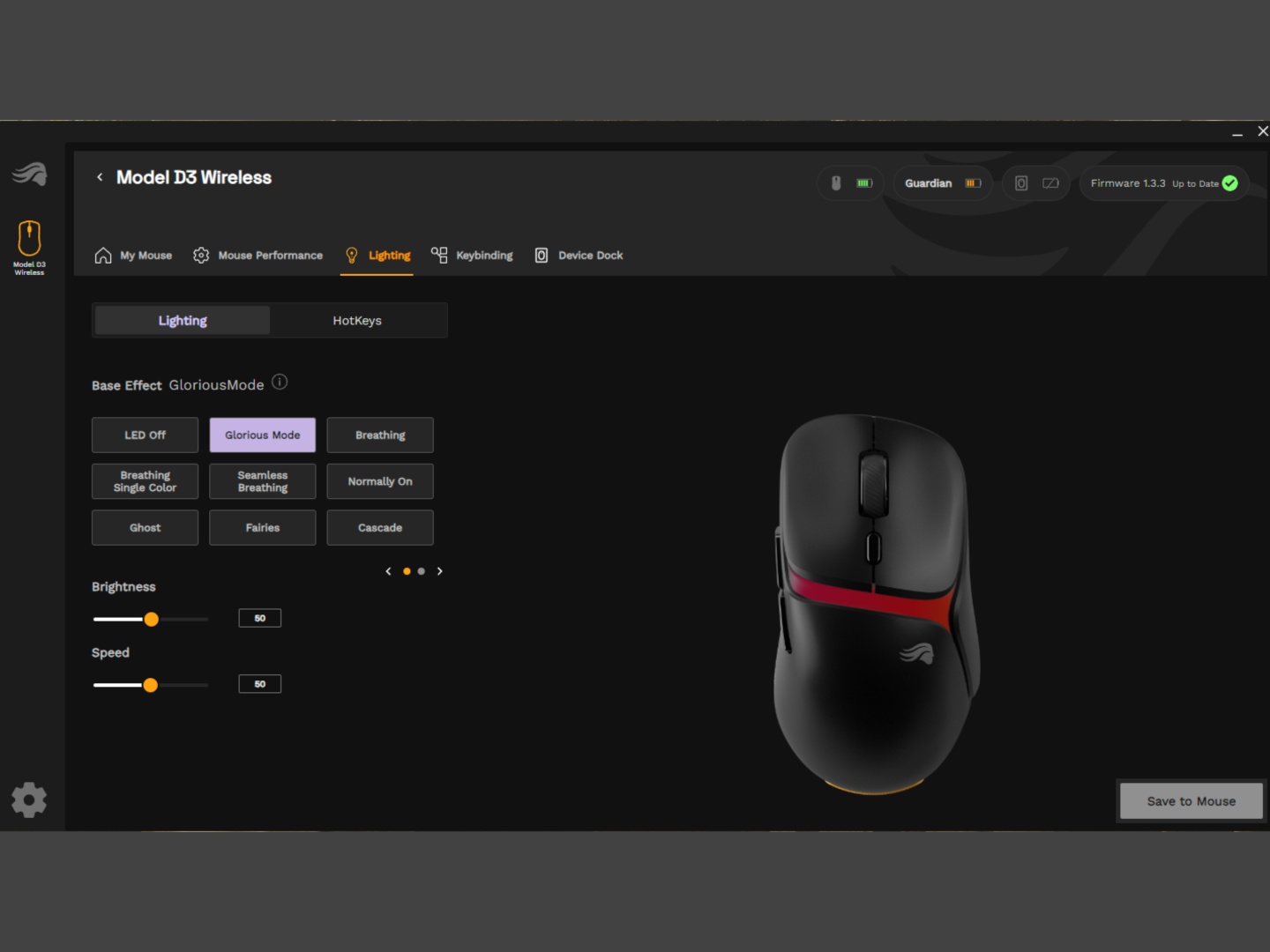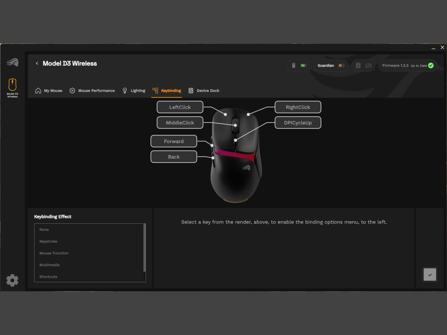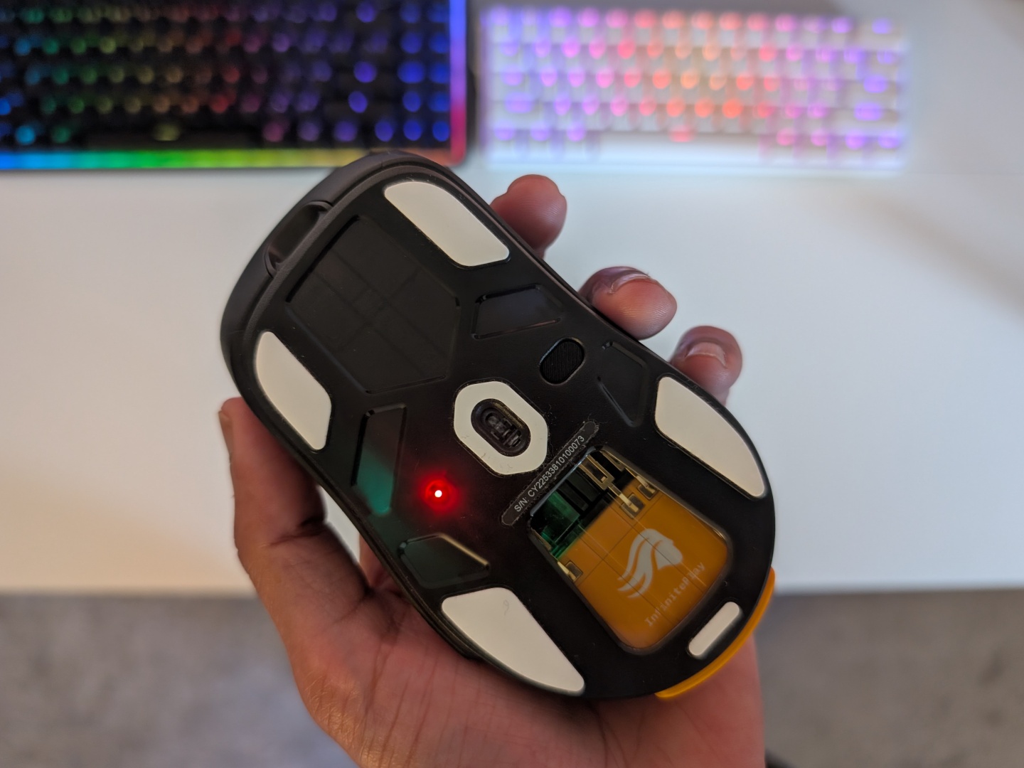 Embora a duração da bateria esteja aquém das expectativas, o sistema InfinitePlay funciona como anunciado. Se a bateria removível acabar, ele muda automaticamente para a bateria Guardian sem se desconectar. Isso lhe dá tempo suficiente para terminar o jogo e trocar as baterias. Como são apenas 200 mAh por bateria, elas também não levam muito tempo para carregar. Notamos que, algumas vezes, quando a bateria removível acabava, o mouse desligava em vez de mudar automaticamente para a bateria Guardian. Ao religá-lo manualmente, o mouse mudava para a bateria Guardian, algo que a Glorious está trabalhando para corrigir com uma atualização de firmware. Na maior parte do tempo, ele alternou automaticamente entre a bateria removível e a interna.