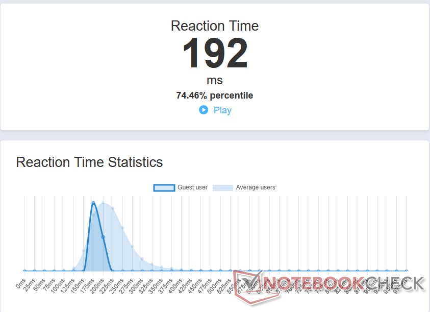 Os tempos de resposta com cliques à esquerda e à direita foram baixos, apesar de o mouse ser sem fio. Também obtivemos um tempo médio de reação de 192 ms na ferramenta Human Benchmark ferramenta.