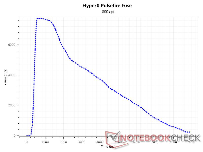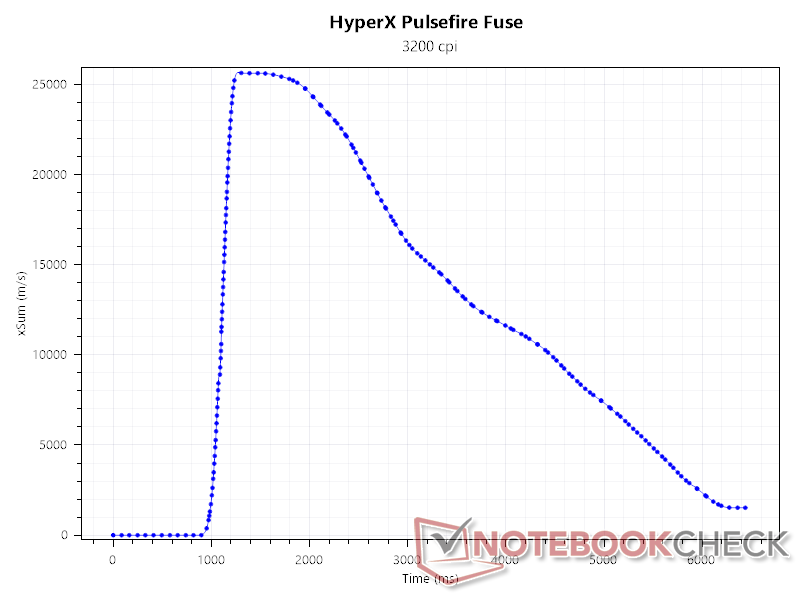 A aceleração e a desaceleração do Fuse Wireless de volta à origem mostraram curvas SRAV decentes, indicando que o mouse tem, inerentemente, pouca ou nenhuma aceleração do sensor que possa afetar negativamente os jogos.