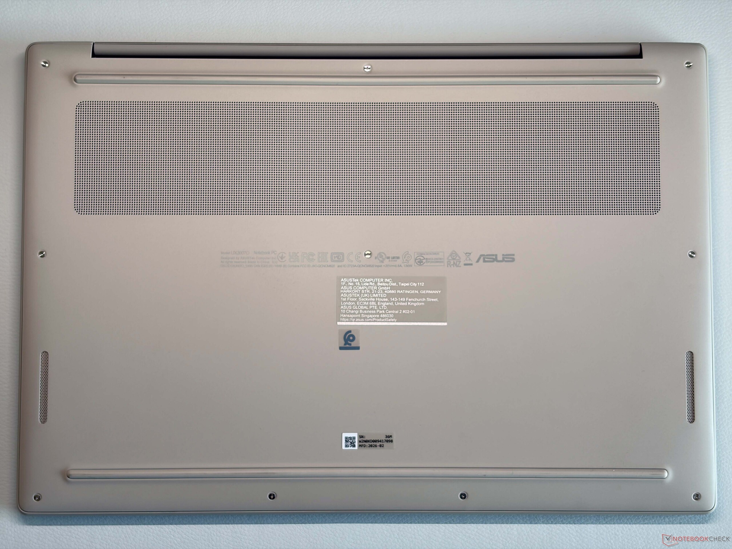 O peso menor do Zenbook A16 é perceptível em comparação com os rivais e até mesmo o menor MacBook Air de 15 polegadas é 300 gramas mais pesado. A fonte de alimentação de 130 W incluída faz a balança pender para 469 gramas.