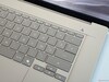 A Asus usa um teclado com deslocamento de 1,3 mm, mas em comparação com o Zenbook A14 menor, a unidade de base é ainda mais rígida e a experiência geral de digitação é um pouco mais confortável. A iluminação de fundo branca funciona bem em combinação com as teclas mais escuras e pode ser controlada automaticamente por meio de um sensor. O grande clickpad (15 x 10 cm) oferece excelentes recursos de deslizamento, mas os cliques mecânicos na metade inferior são um pouco altos. Recomendamos que o senhor use o toque para clicar.