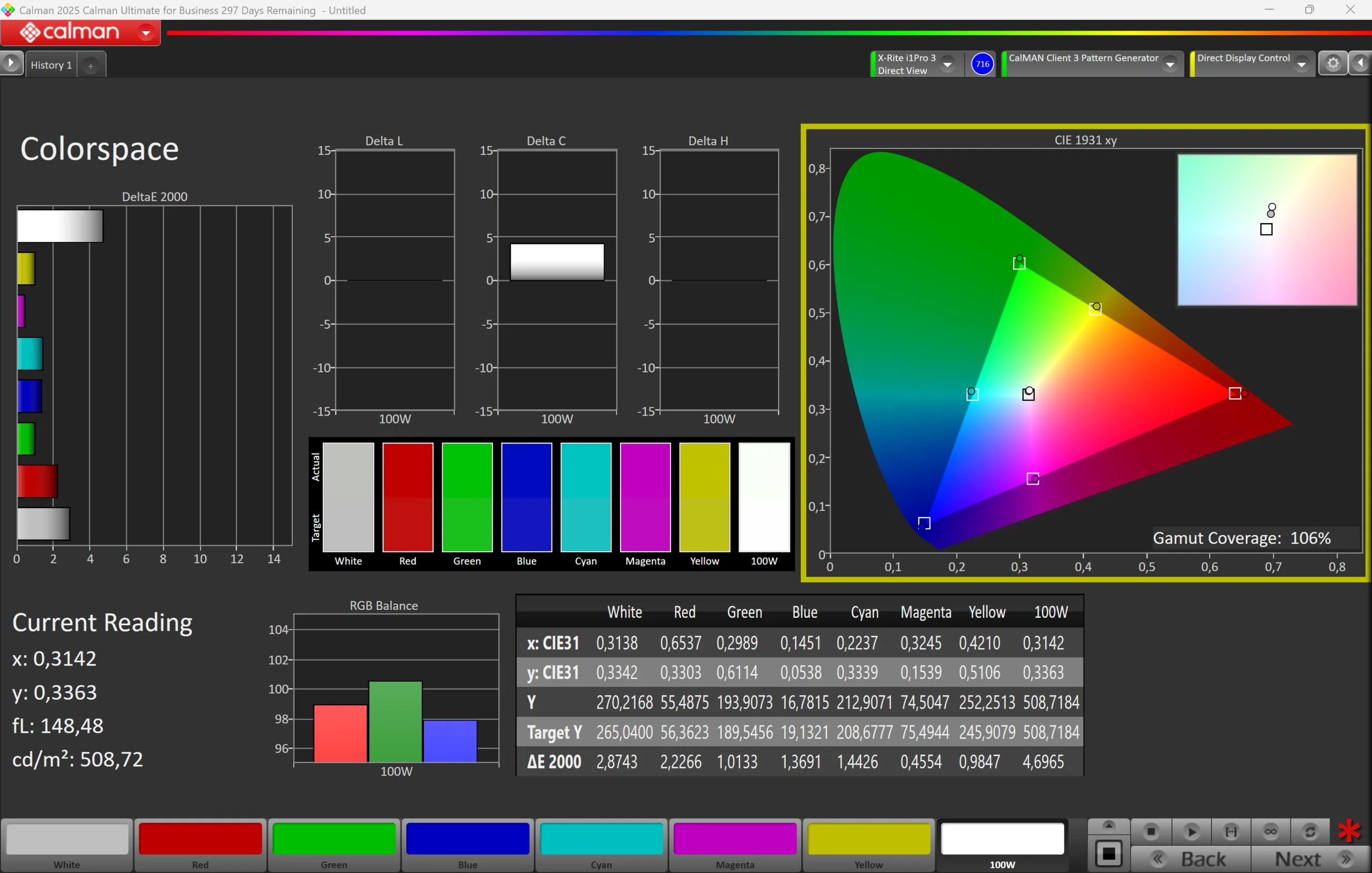 ΔE ColorChecker Calman: 1.1 | ∀{0.5-29.43 Ø4.74}