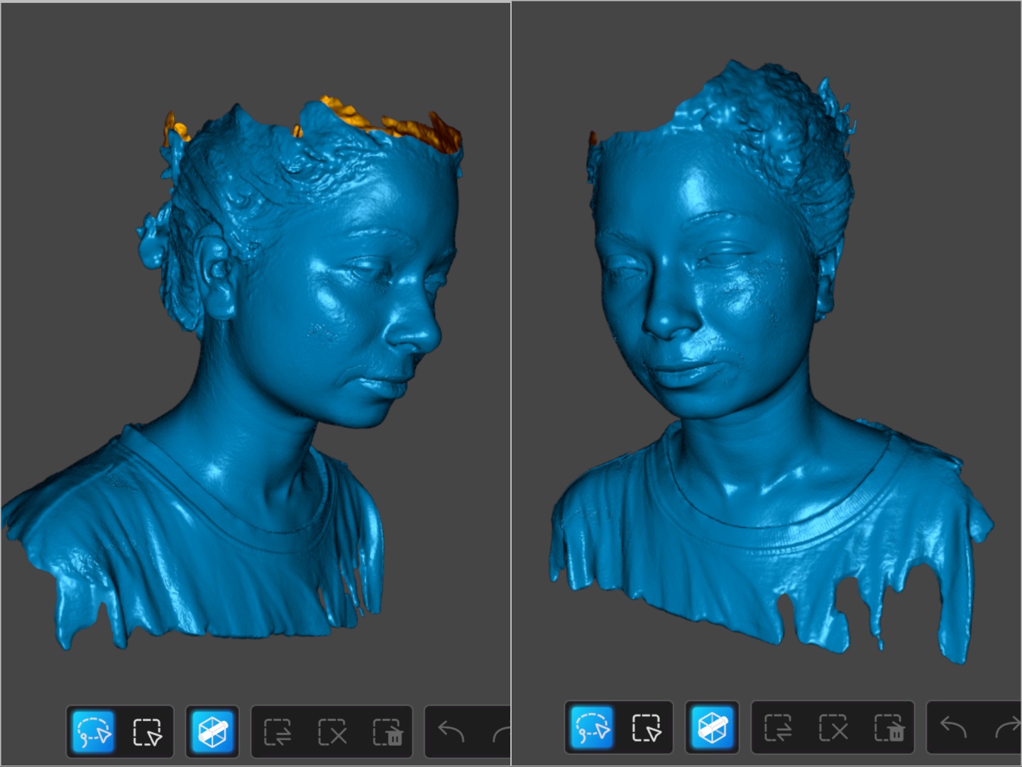 Por fim, o teste do escaneamento infravermelho envolveu um capacete de espuma feito à mão de um ranger do jogo Anthem e também de um ser humano. O escaneamento NIR é rápido e, dependendo da iluminação, pode produzir um mapa de cores bastante preciso. Para digitalizações humanas, o Sermoon S1 tem dificuldades com cabelos, mas essa é uma limitação conhecida dos scanners 3D.