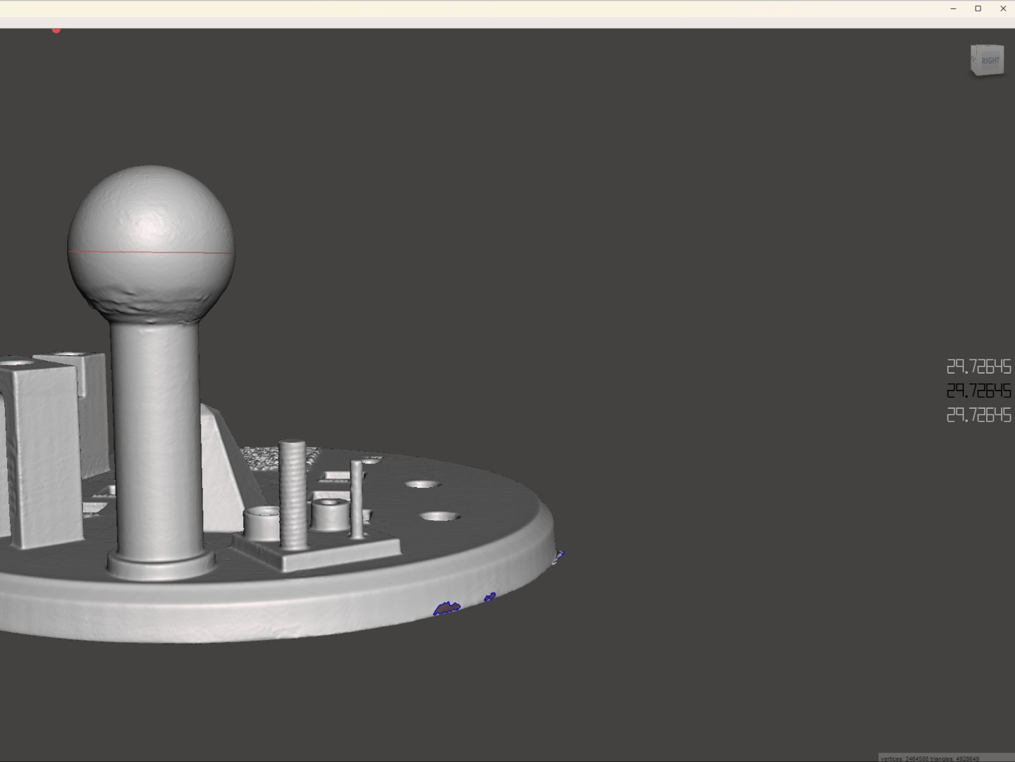 Testamos a precisão e a utilidade do Sermoon S1 com alguns aplicativos diferentes. O Scanbench impresso em 3D (projetado por 'mairyjulien' em Makerworld) tem muitas facetas para colocar o scanner à prova. Usamos o MeshMixer e o QuickSurface para identificar medidas para o modelo 3D criado pelo scanner usando uma combinação dos três modos de laser azul. O Sermoon S1 apresentou variações de menos de 0,30 mm na maioria das facetas. No entanto, ele teve mais dificuldades com detalhes de profundidade, pois a variação estava na faixa de 0,50 a 0,60 mm. A esfera no Scanbench estava na faixa de precisão de 0,02 mm a 0,04 mm, mas as outras medições mostraram uma variação maior. Também notamos que, às vezes, durante a digitalização, o laser azul fica muito brilhante no modo automático, o que gera artefatos na digitalização. Felizmente, o Creality Scan 4 faz um bom trabalho ao eliminar esses artefatos durante o processamento. O que for deixado para trás pode ser removido manualmente com facilidade.