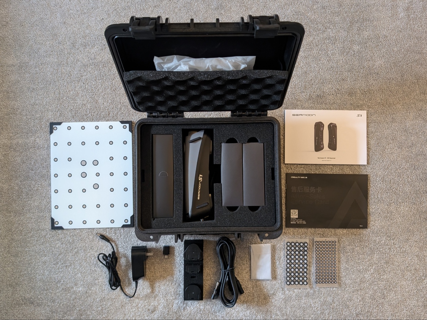 O Sermoon S1 é embalado com segurança em um estojo pelicano, o que facilita o armazenamento e o transporte. Os cabos e o adaptador de alimentação têm seus recortes na espuma, e há um bolso na tampa para toda a documentação e os amplos marcadores. O estojo pelicano também abriga a placa de calibração na parte inferior, bem escondida, pois não é necessária com frequência.