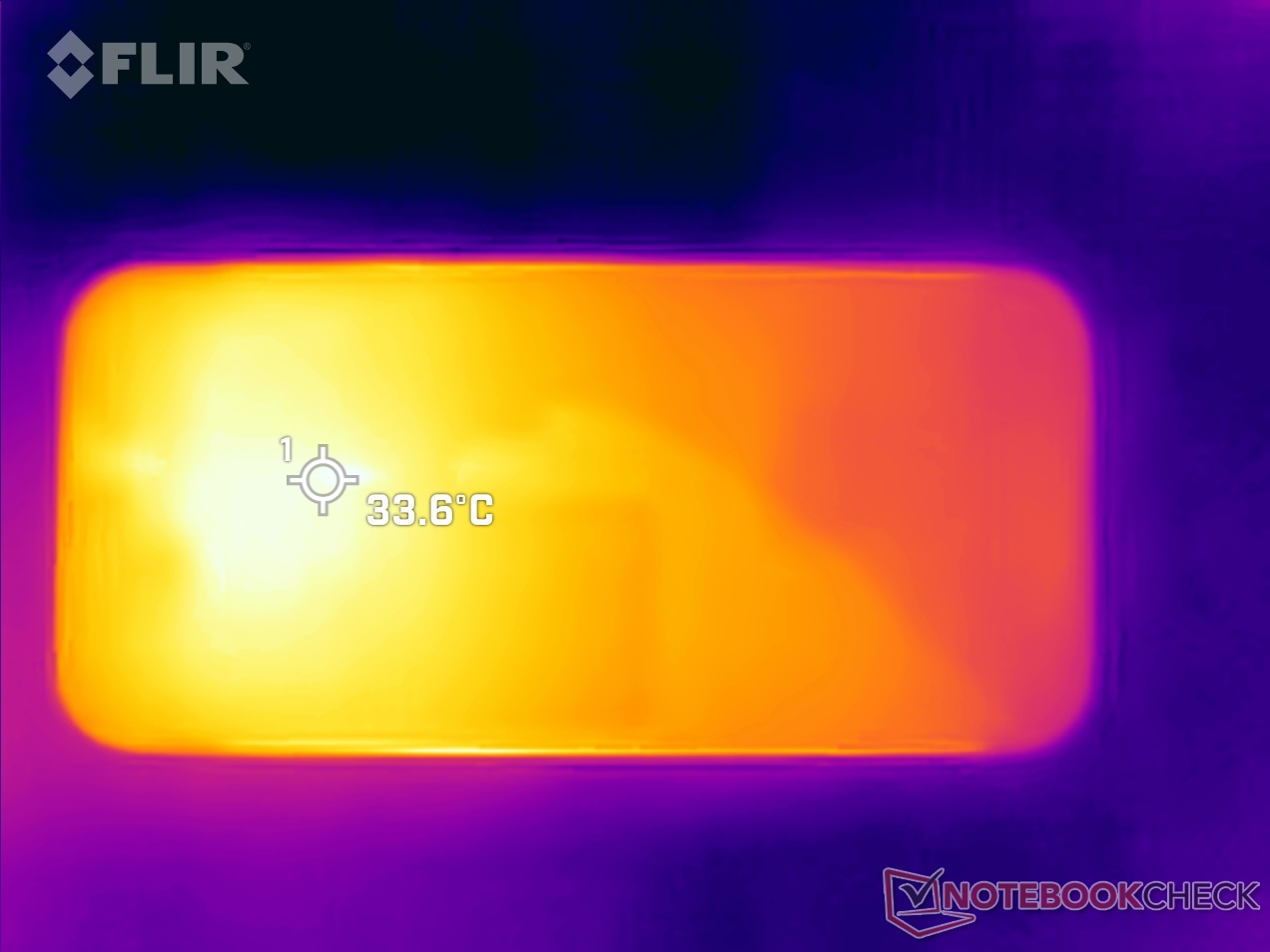 (+) Em uso inativo, a temperatura média para o lado superior é 30.2 °C / 86 F, em comparação com a média do dispositivo de 32.9 °C / ### class_avg_f### F.