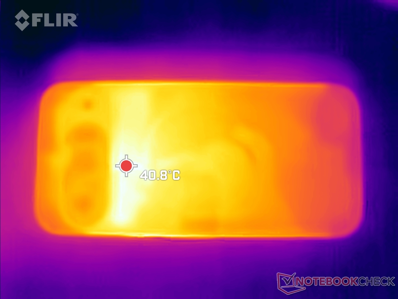 (±) A temperatura máxima no lado superior é 40.6 °C / 105 F, em comparação com a média de 35.2 °C / 95 F , variando de 21.9 a 247 °C para a classe Smartphone.