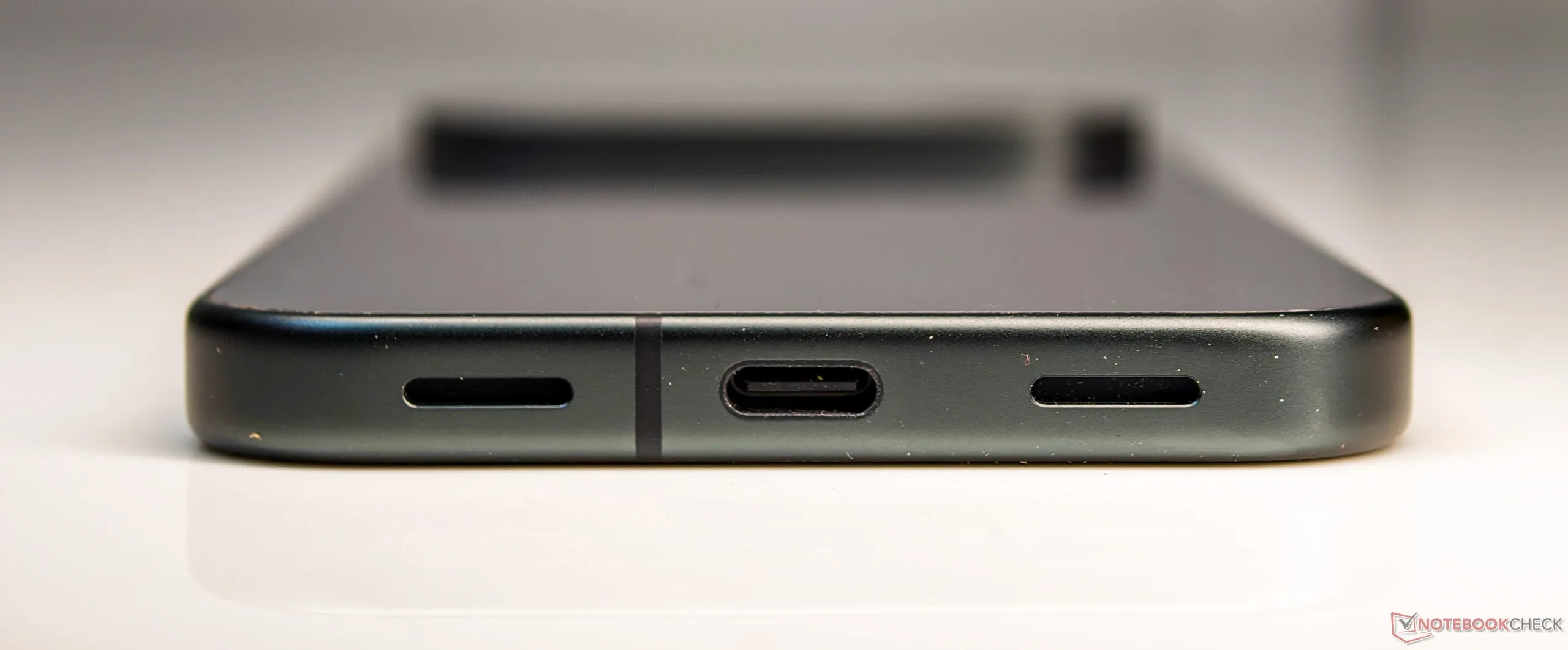 O alto-falante está posicionado à direita da porta USB 3.2 Type-C, para que não fique bloqueado quando o telefone for mantido na orientação paisagem.