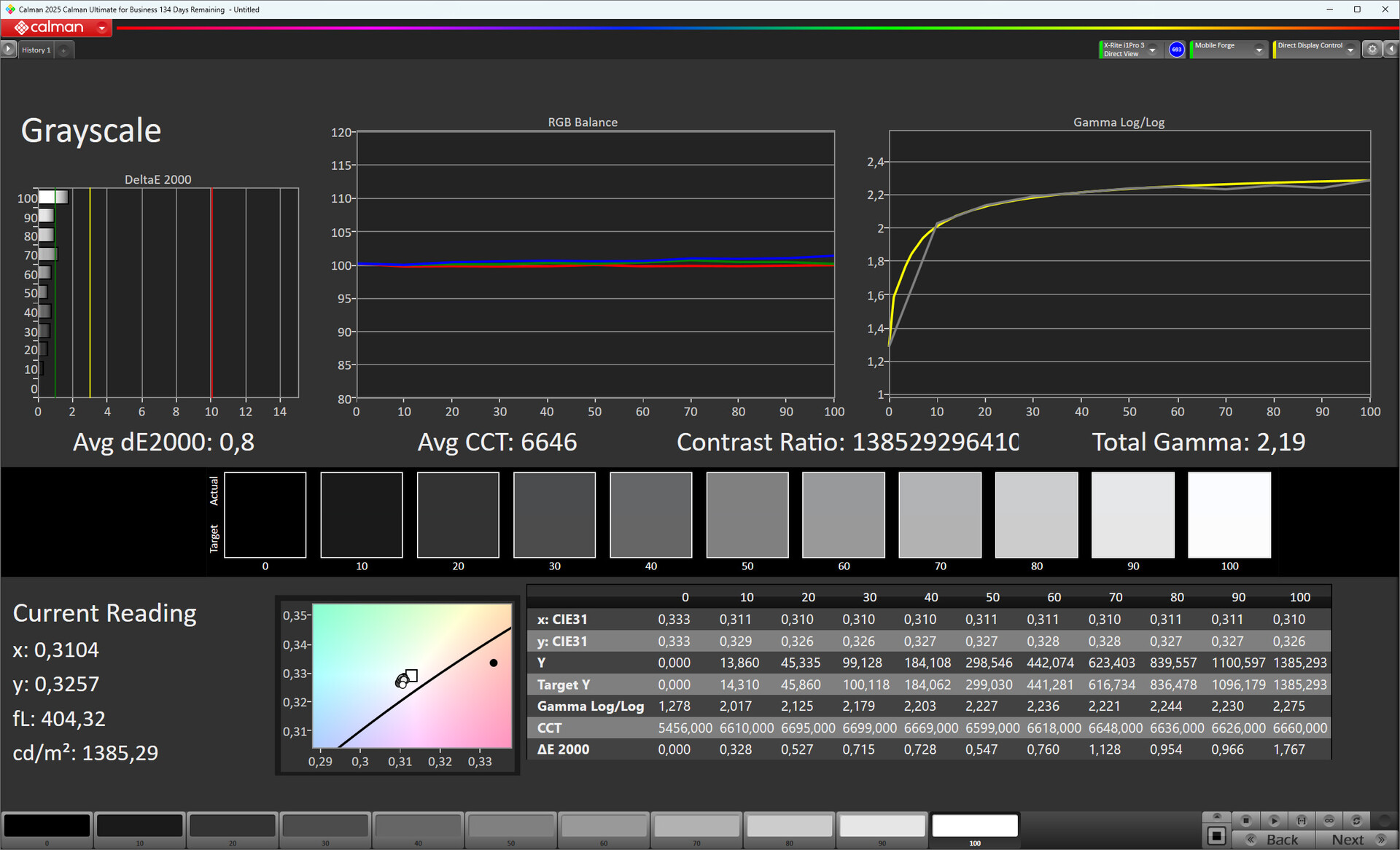 O smartphone do Google também não revela nenhum desvio importante do DeltaE na reprodução de cores do ColorChecker.