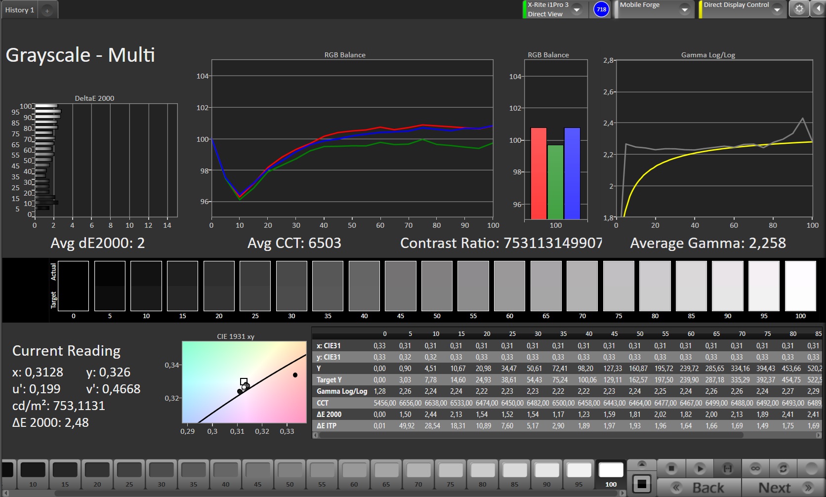 ΔE Greyscale Calman: 2 | ∀{0.09-98 Ø5}
