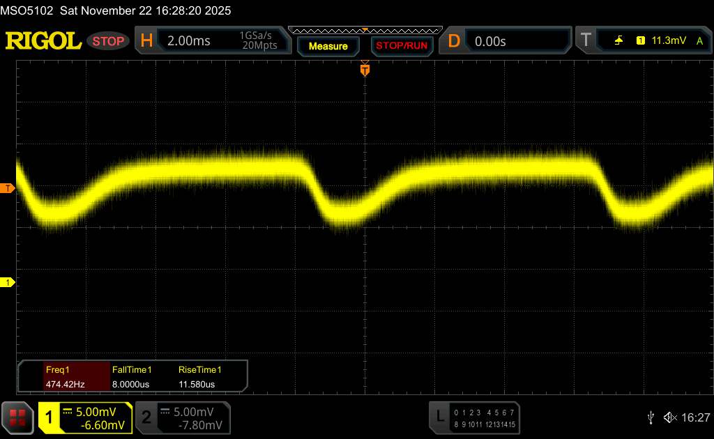No entanto, observamos uma oscilação de PWM em uma frequência bastante alta de 474 Hz. Por esse motivo, os usuários sensíveis à cintilação devem testar a tela antes de comprá-la, pois as reações individuais a diferentes telas podem variar.