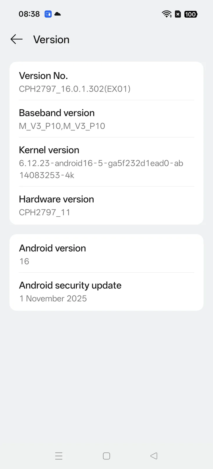 A Oppo usa sua própria interface ColorOS, que é baseada em Android 16. Os patches de segurança são de 1º de novembro de 2025, o que significa que estão atualizados no momento da análise. As atualizações estão planejadas para mais seis anos.
