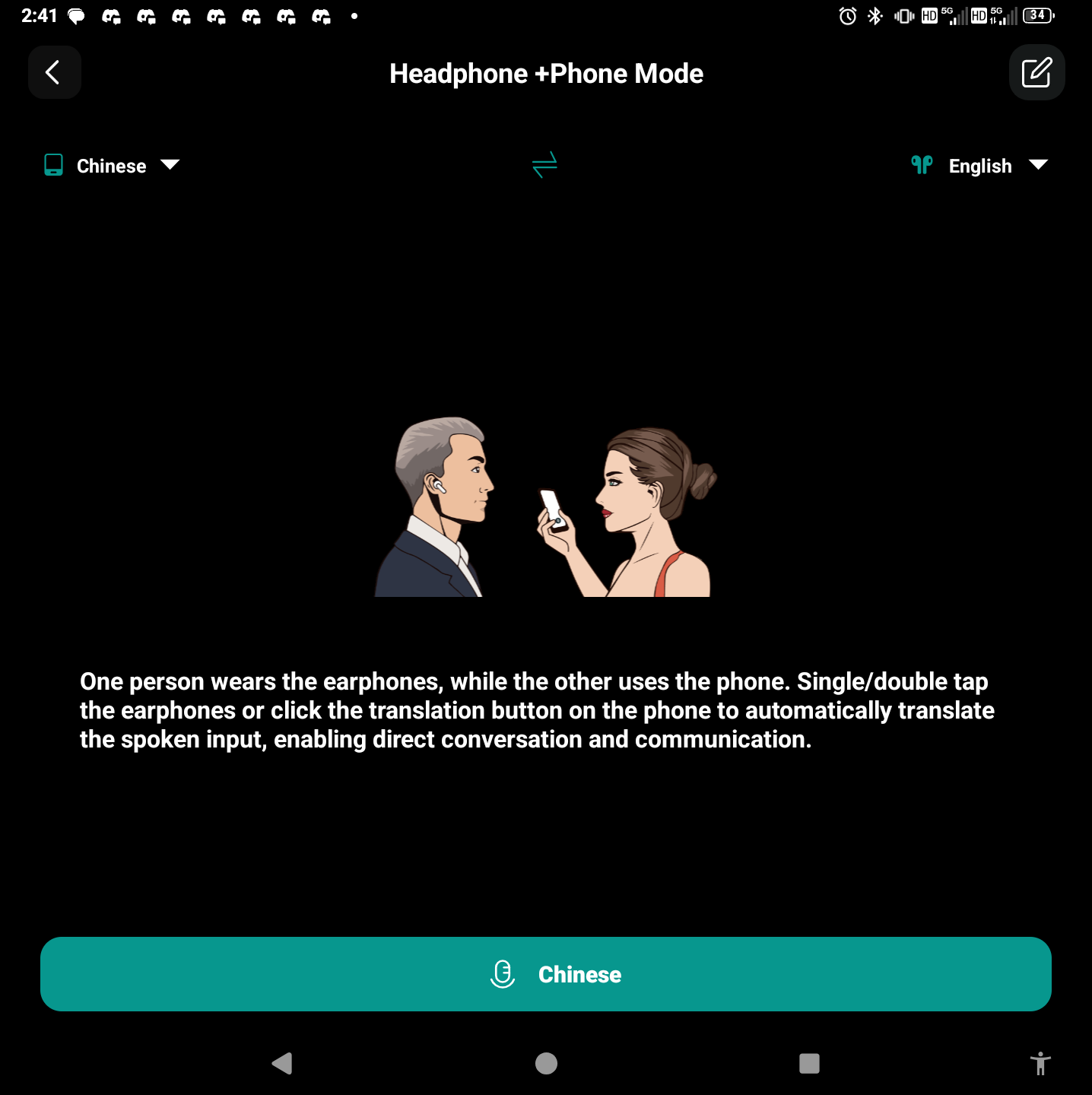 | Modos de tradução | 4 (toque, alto-falante, conversa livre, off-line) |