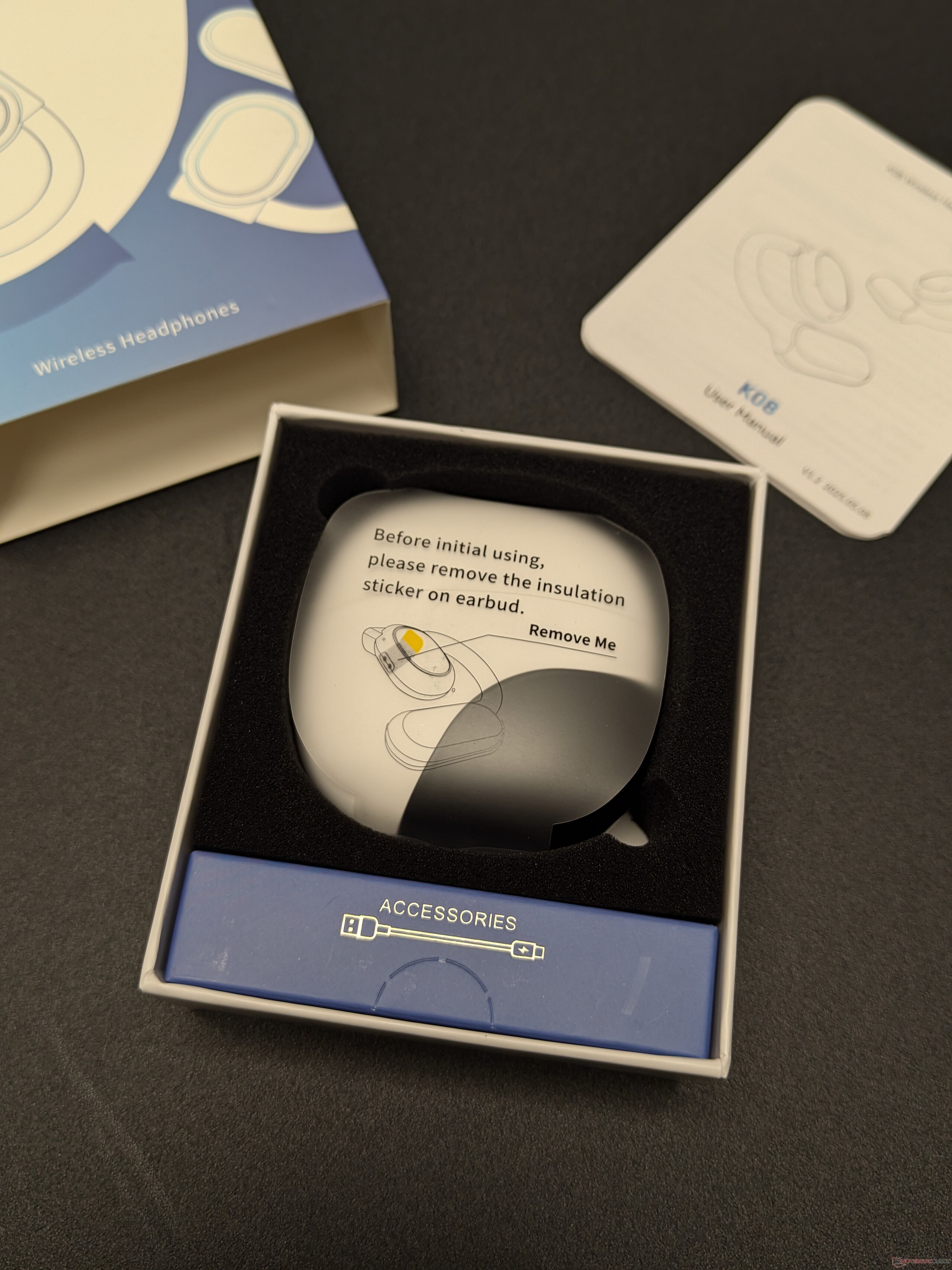 Semelhante a outros acessórios de áudio econômicos, a experiência de desembalagem é simples. A unidade vem com um estojo de carregamento, instruções e um cabo USB. Notavelmente, o foco está imediatamente no aplicativo complementar, que é necessário para desbloquear a funcionalidade de tradução do K08.
