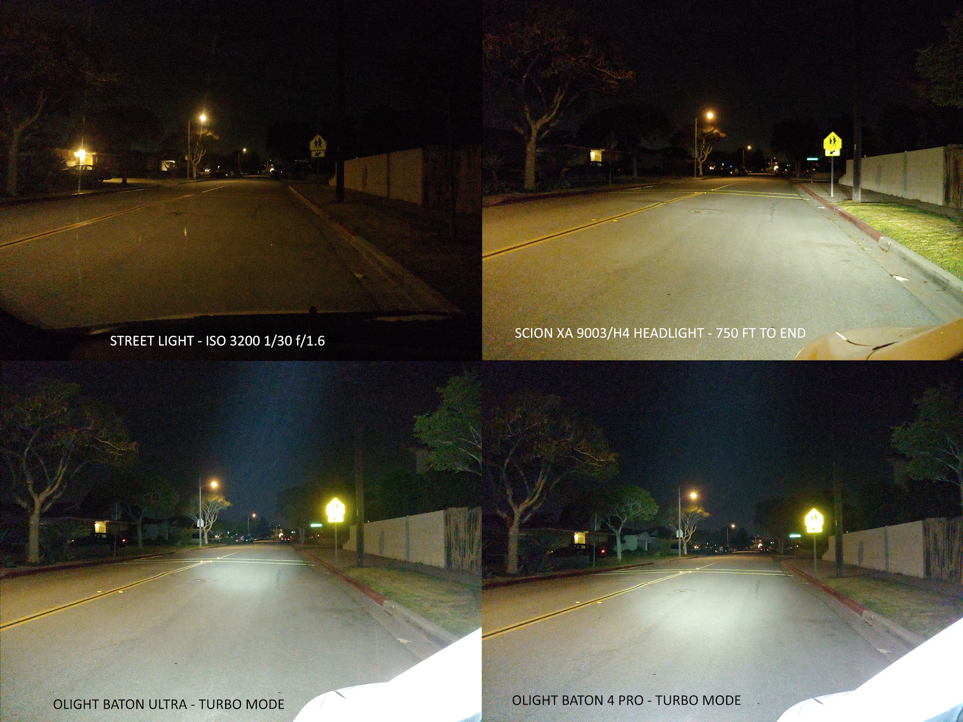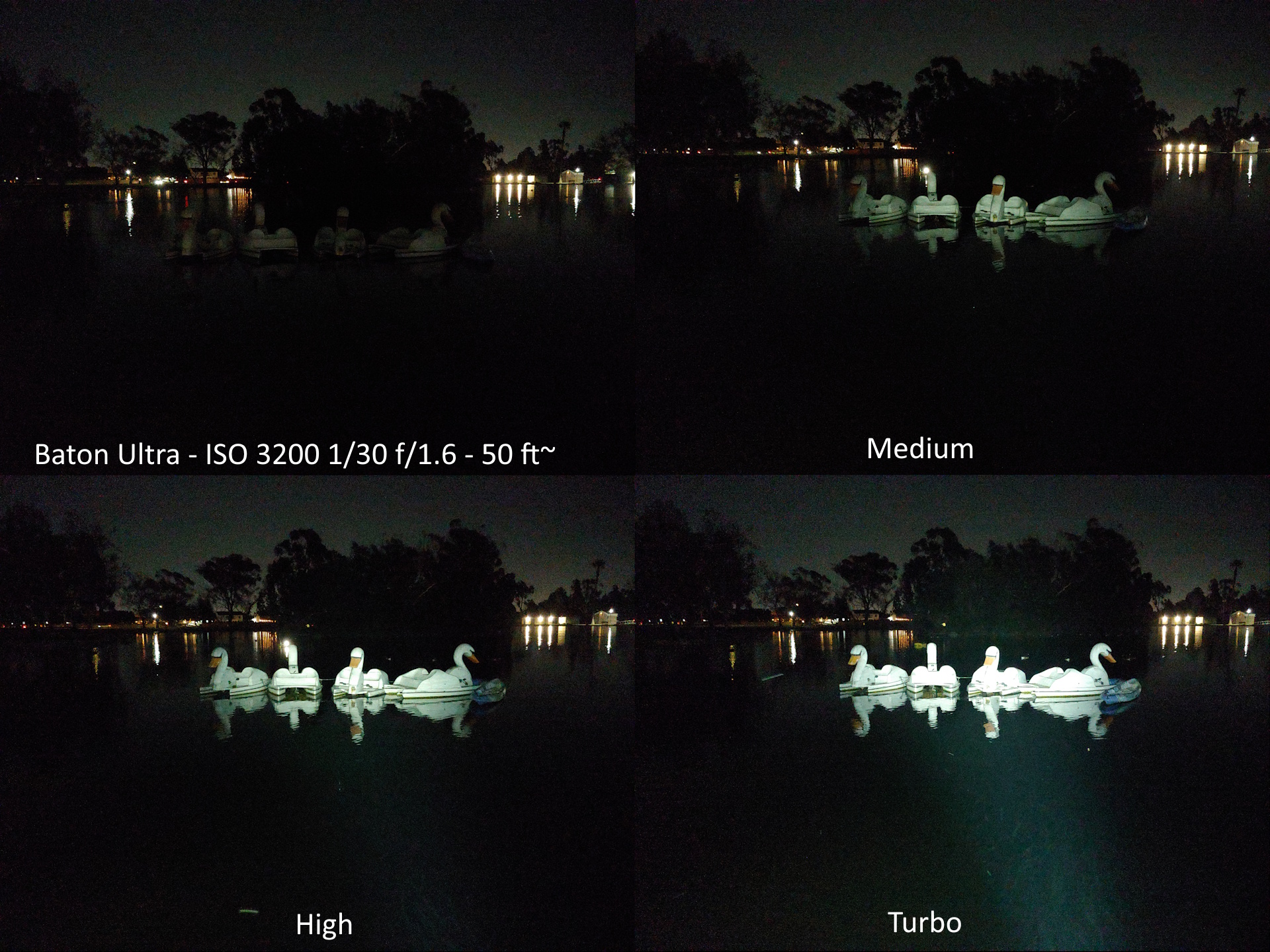 Os bastões foram testados no modo Turbo contra faróis de carro 9003/H4. Eles foram capazes de iluminar uma rua residencial o suficiente para que o senhor pudesse passar por ela à noite, iluminando pelo menos 91 m (300 pés) na estrada.