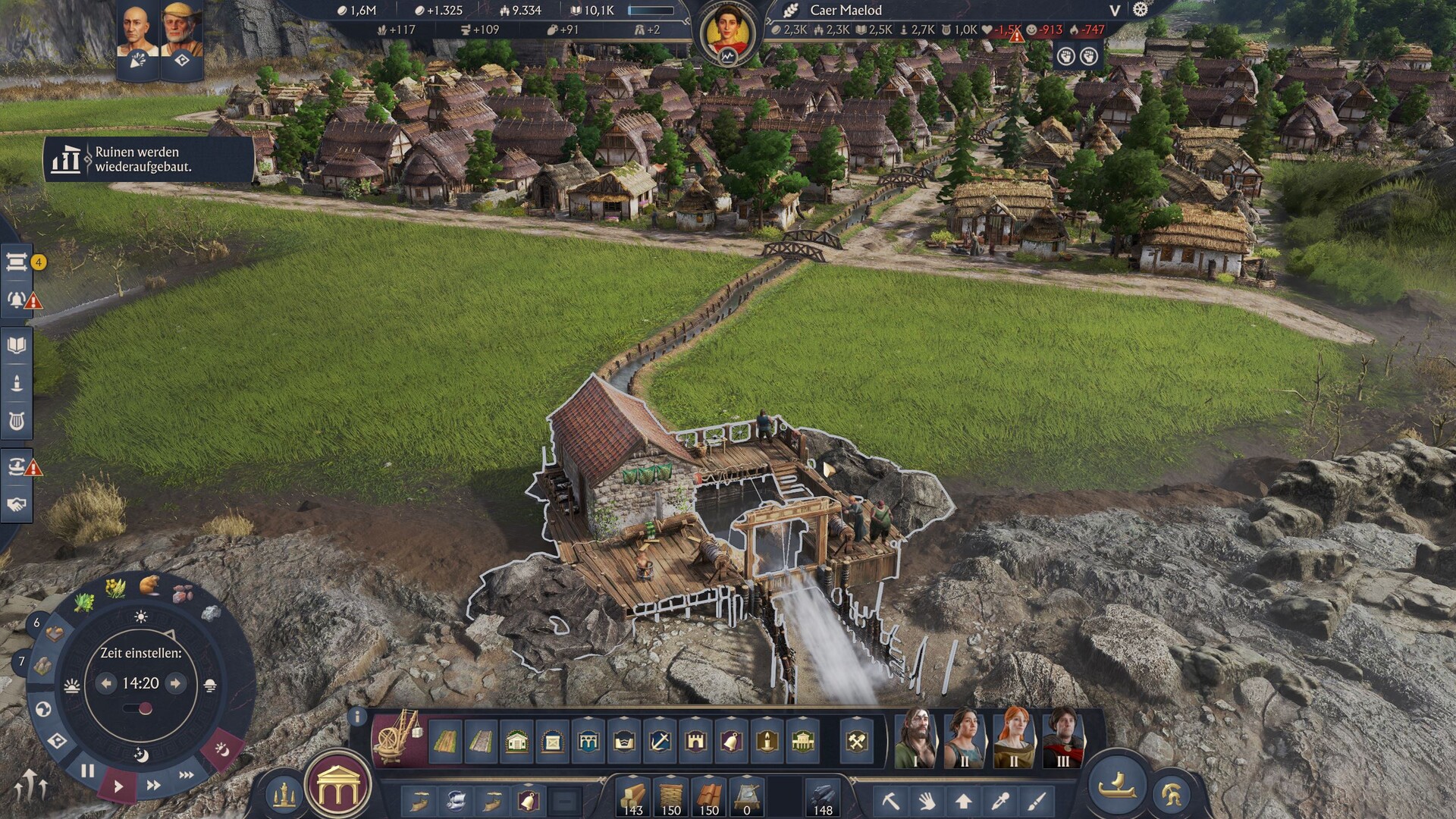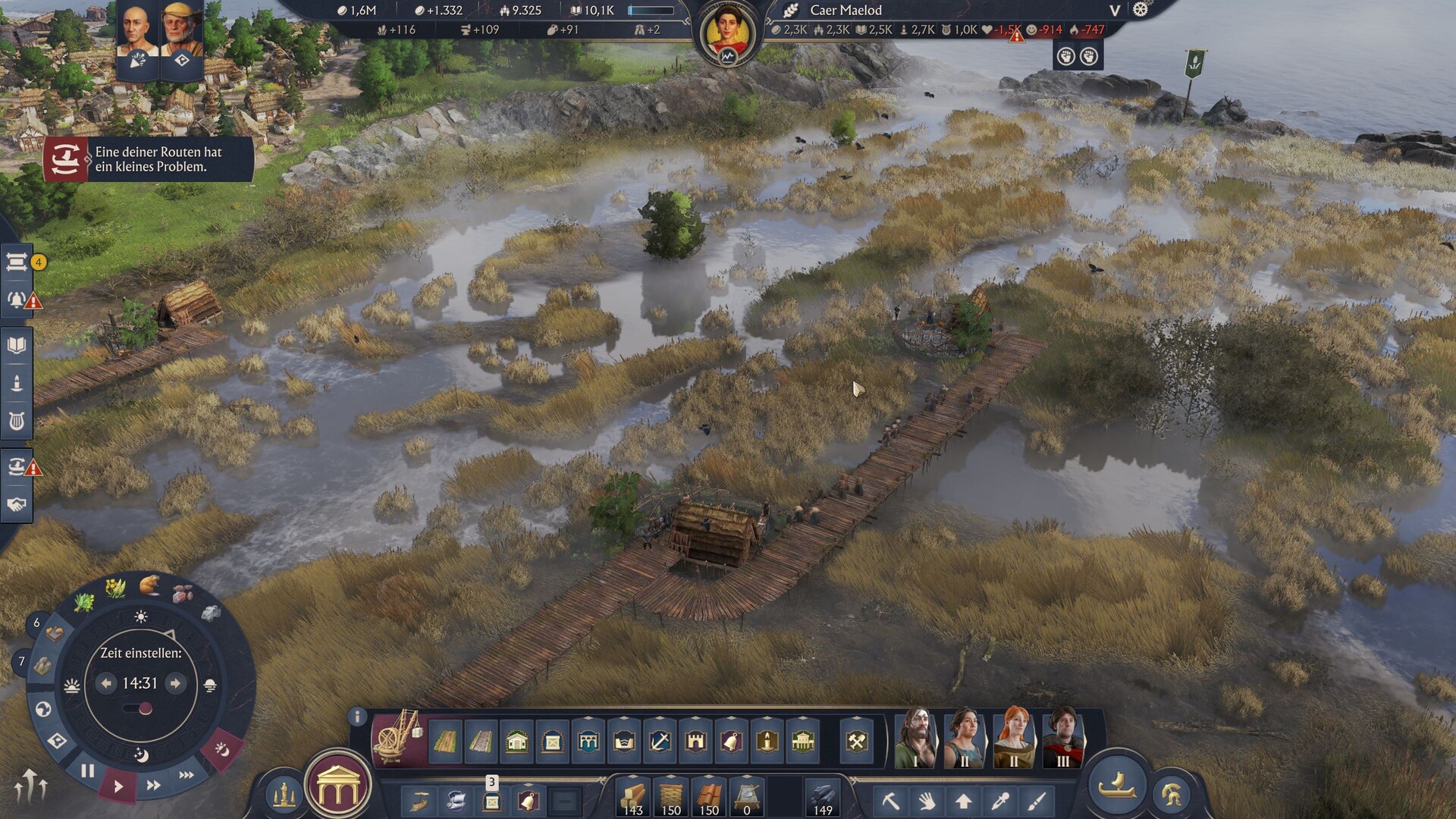 Os jogadores são imediatamente informados de que Albion é a região inicial mais desafiadora, o que podemos confirmar em geral. No entanto, começar em Albion não é exatamente um desafio intransponível, mesmo para iniciantes. Dito isso, a área do pântano envolve uma mecânica de jogo bastante incomum. Certos produtos, como enguias, só podem ser produzidos nesse pântano, que também pode ser drenado graças a tecnologias pesquisáveis para ganhar terrenos valiosos para construção, principalmente em Albion.