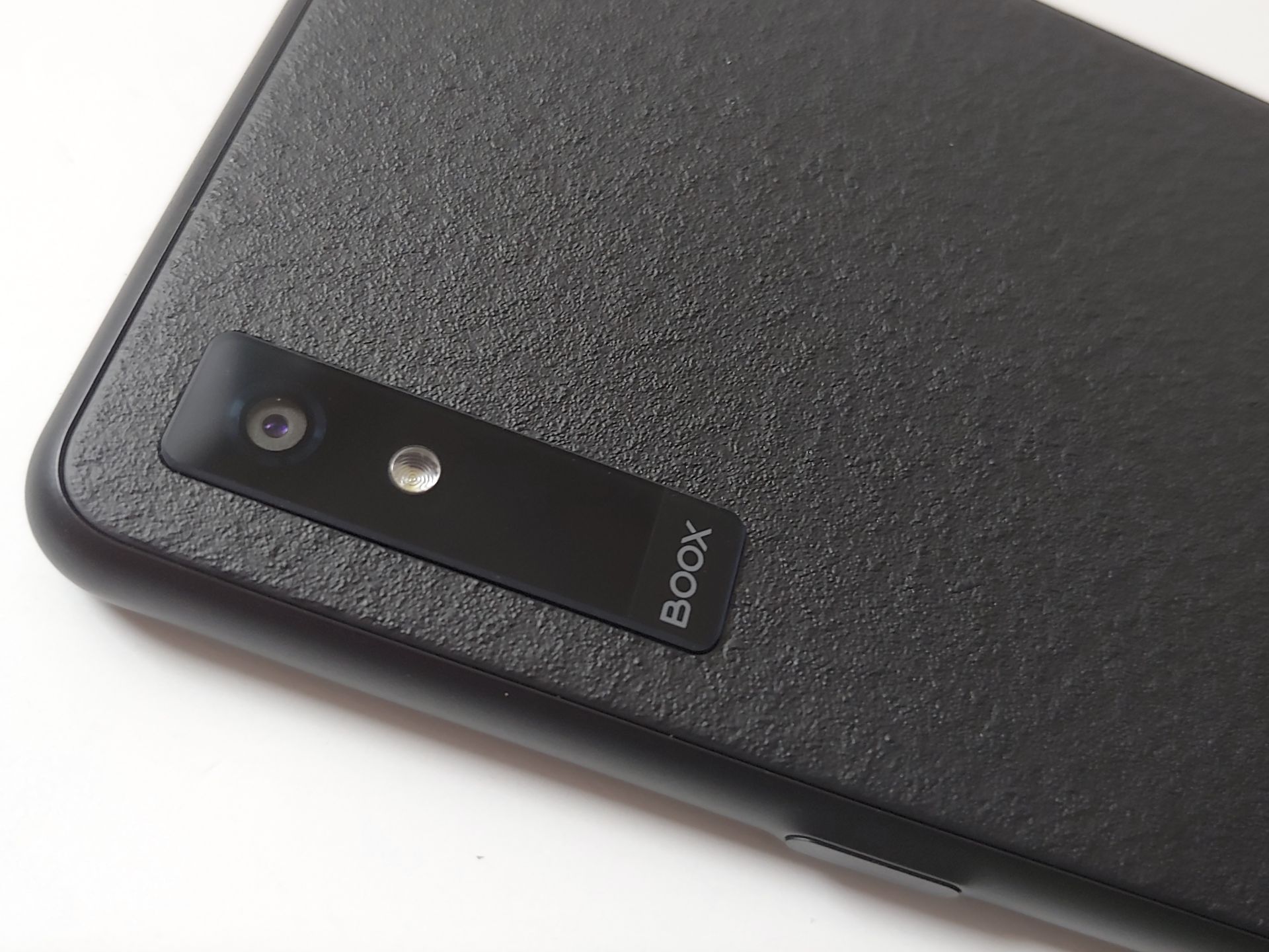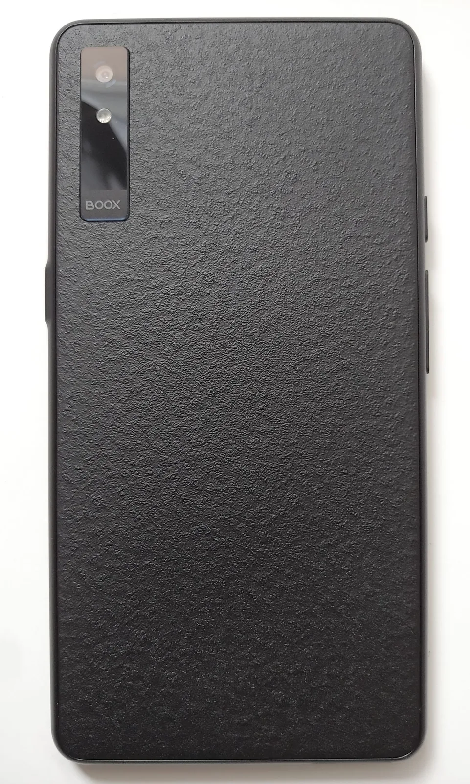 O Boox se assemelha a um smartphone, com uma tela sensível ao toque fosca E Ink Kaleido 3 para leitura sem reflexos, microfones duplos e alto-falantes estéreo. Os controles físicos incluem um botão liga/desliga na borda direita e botões inteligentes e de volume na esquerda. Na parte traseira, há uma câmera de 16 MP com flash.