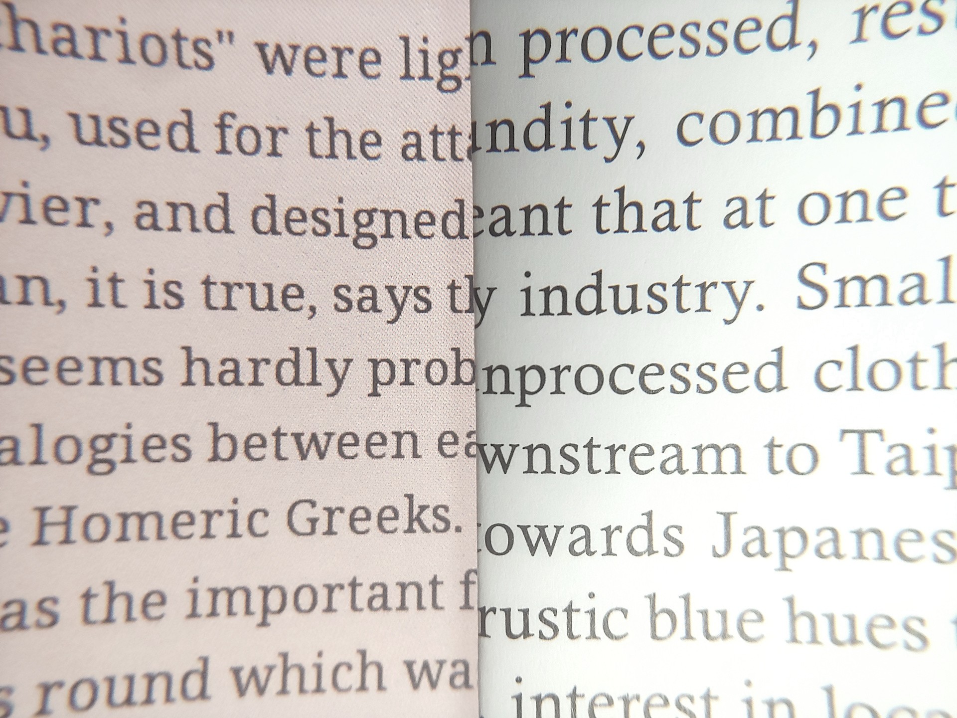 Sua gama de cores e contraste são limitados em comparação com as revistas, com os brancos aparecendo em cinza claro e os pretos em cinza escuro, mas ele reflete a luz como o material impresso e funciona à luz do dia sem luz de fundo. O brilho da luz de fundo e a temperatura da cor são ajustáveis para uso confortável em ambientes internos.
