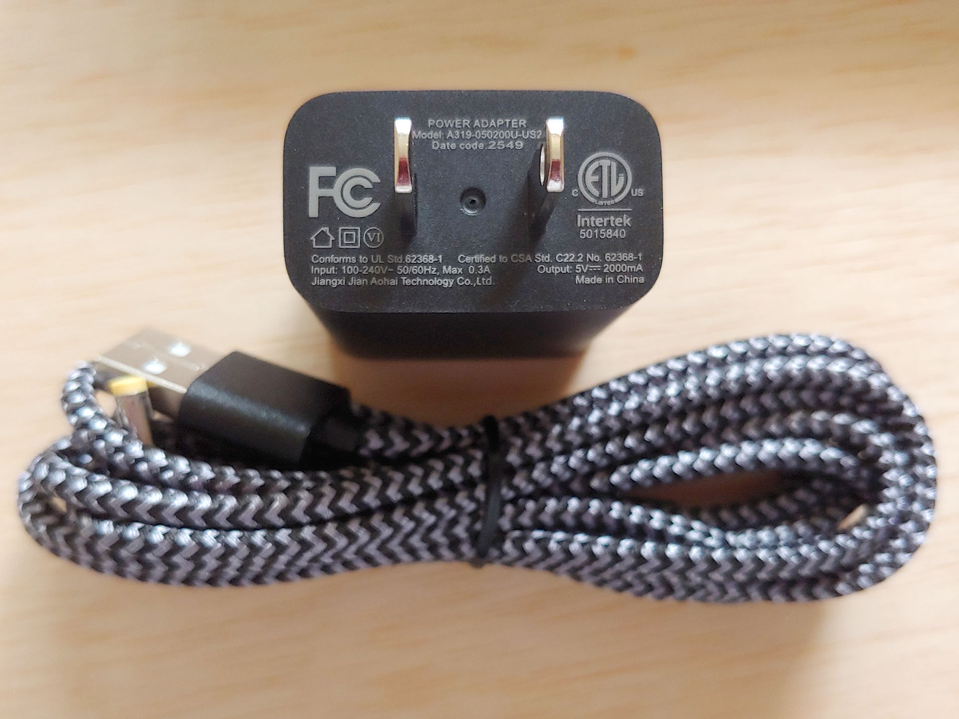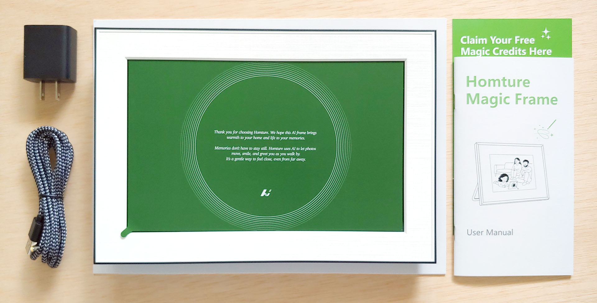 O Homture veio com um adaptador CA e um cabo, um cartão de código de presente da AI-service e dois manuais.