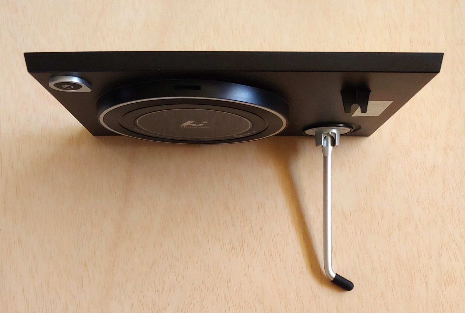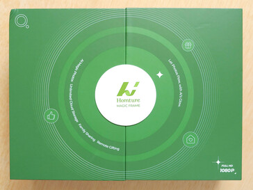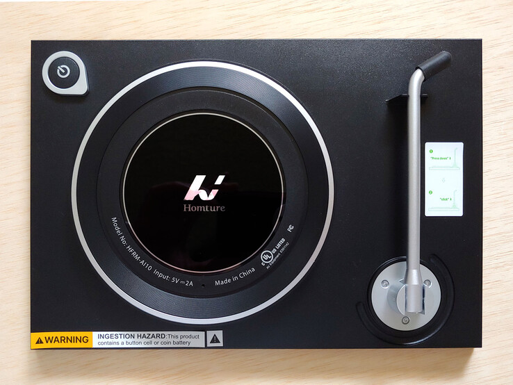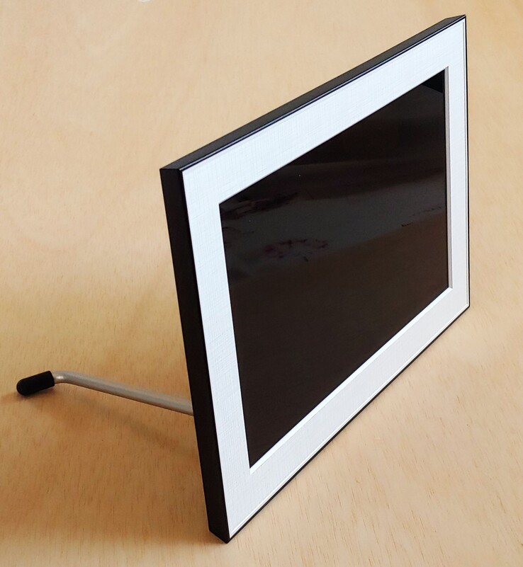 O Homture Magic Frame de 10,1 polegadas tem um design simples com uma tela LCD montada em uma moldura de plástico texturizado. A moldura tem um suporte de metal dobrável para uso em mesa. O botão liga/desliga está localizado na parte traseira, junto com a porta de alimentação.