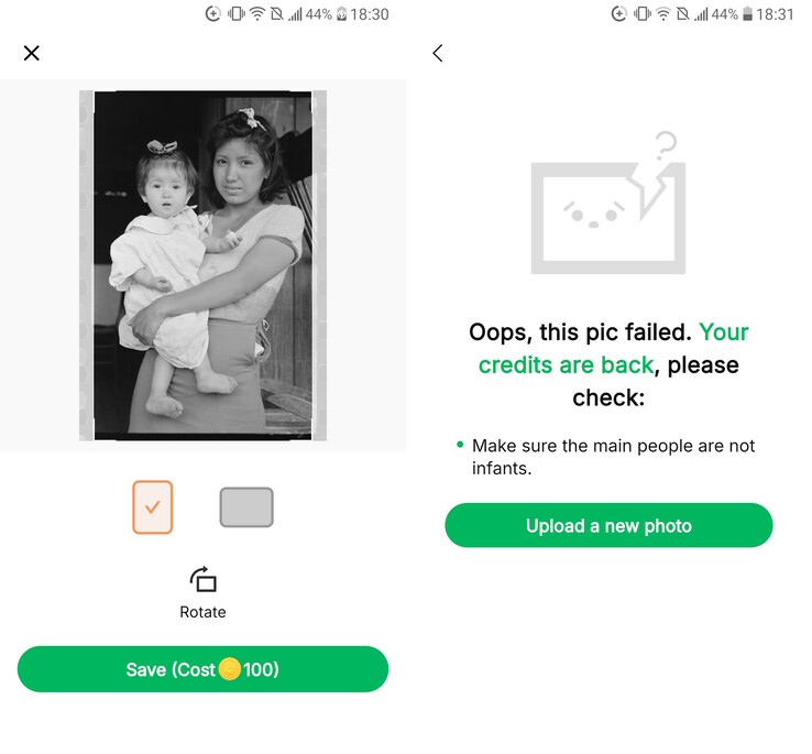 Fotos em preto e branco ou danificadas também podem ser reparadas, coloridas e animadas. A qualidade da restauração é alta e as gerações contêm uma quantidade surpreendente de detalhes, mesmo com o uso de originais de baixa resolução.