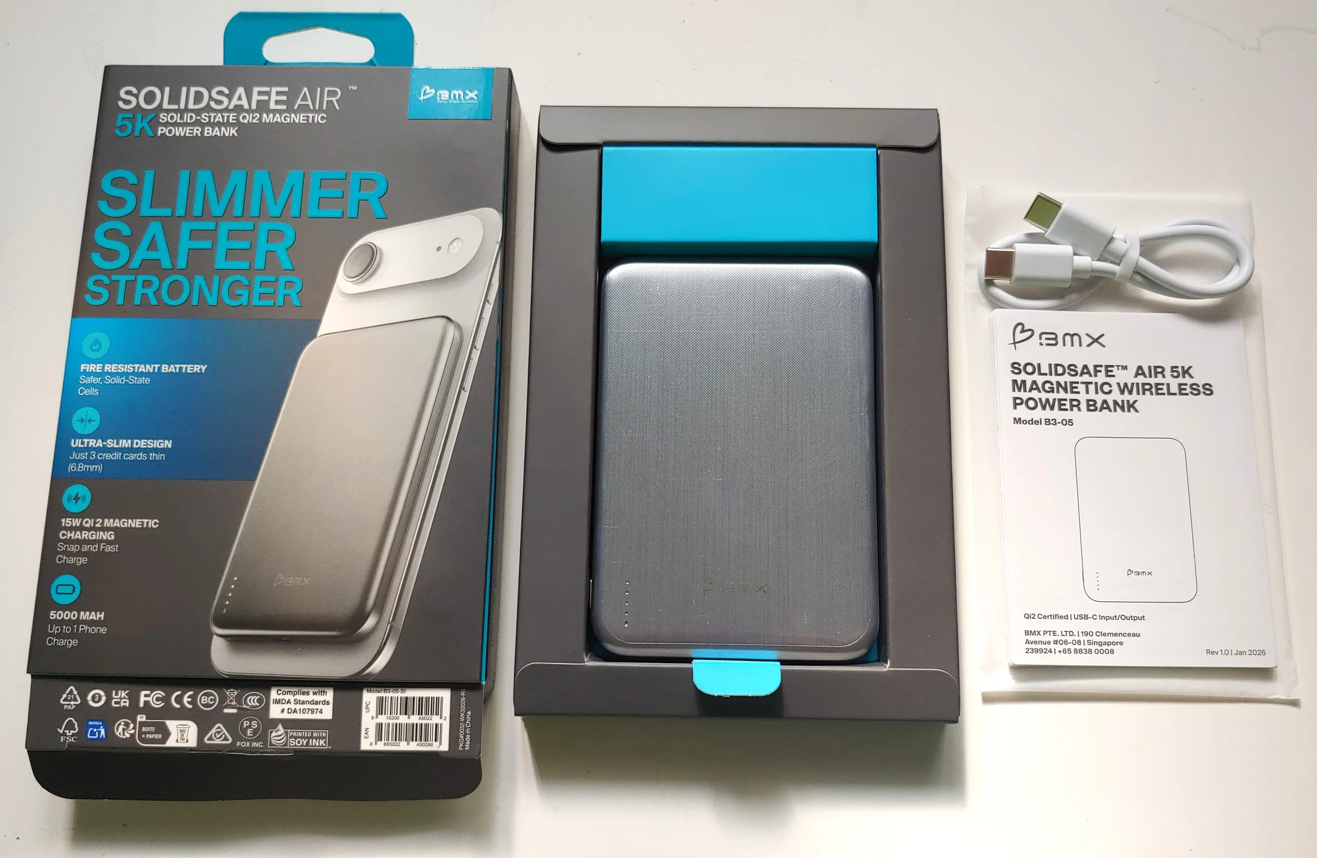 Análise prática do banco de potência BMX SolidSafe Air: Carregador fino com uma base de carregamento magnético sem fio Qi2