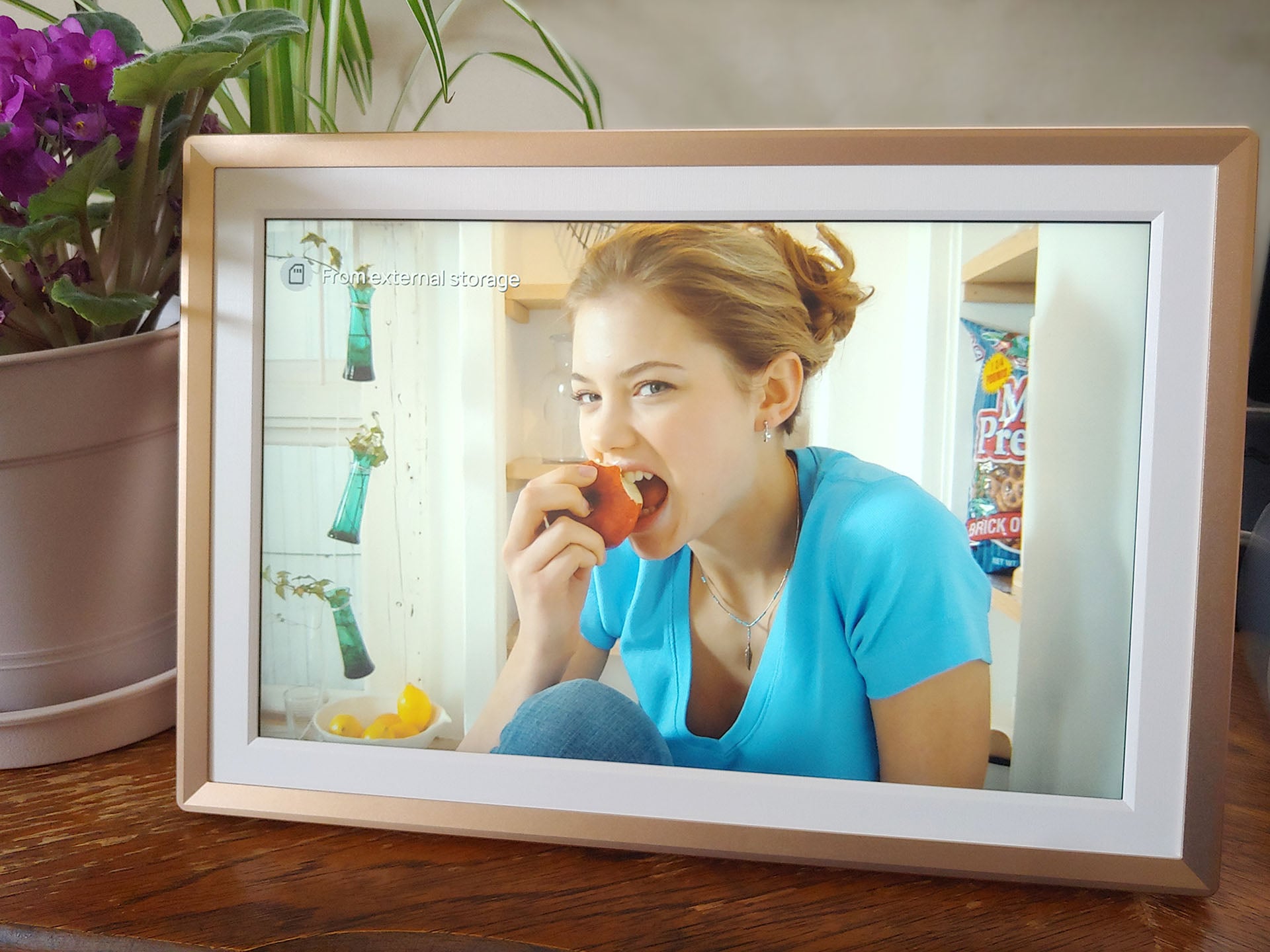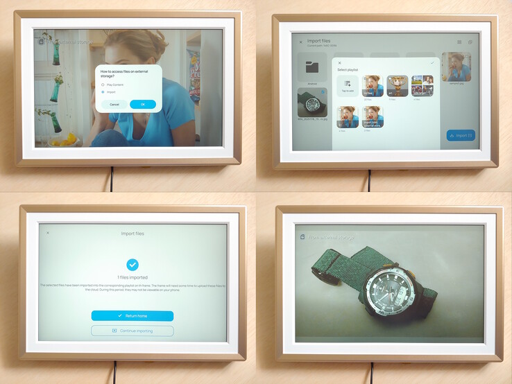 Graças ao slot para cartão SD e à porta USB, as fotos e os vídeos puderam ser reproduzidos imediatamente a partir de um cartão de câmera, sem a necessidade de fazer o upload primeiro. As imagens podem ser ampliadas para caber na imagem inteira ou preencher o quadro. A capacidade de criar pastas foi muito útil para organizar as fotos, permitindo que os usuários visualizassem fotos de eventos selecionados.