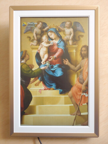 A tela dá um toque pop a obras de arte, como pinturas a óleo, que aparecem com cores um pouco mais saturadas do que as originais.