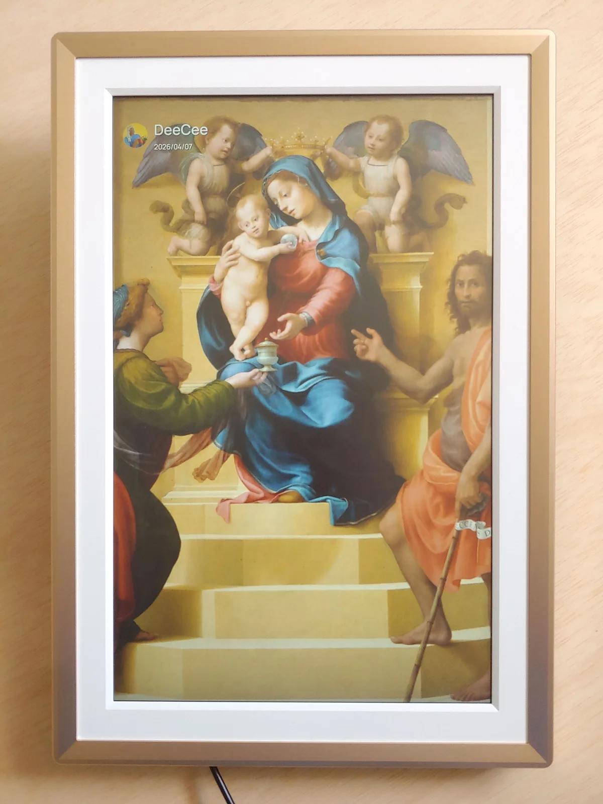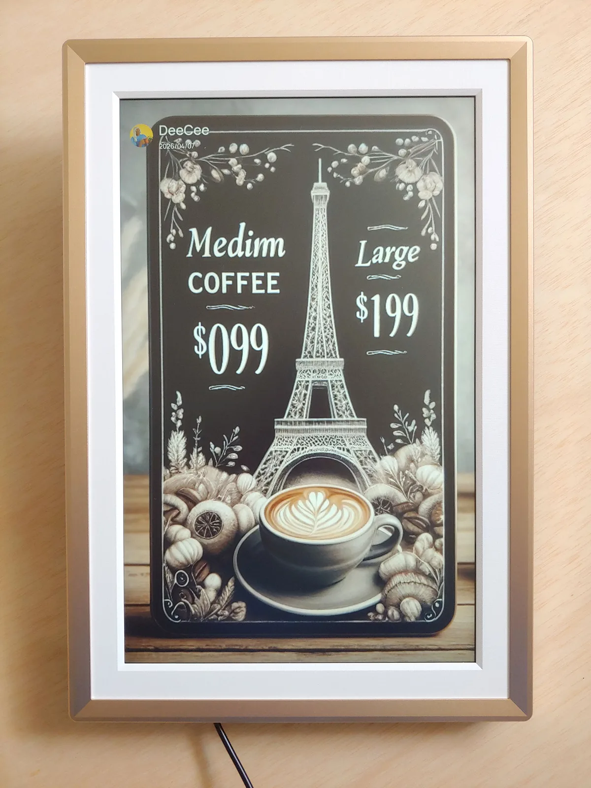 Mesmo assim, é uma maneira fácil e econômica de aproveitar as fotos sem imprimir. As molduras podem ser pré-carregadas com bênçãos e imagens para presentear, e as empresas podem reutilizá-las para sinalização de cafeterias ou cardápios.
