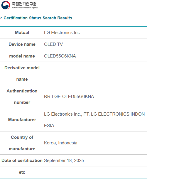 Recentemente, o site DisplaySpecifications descobriu as TVs LG C6 e G6 no banco de dados da National Radio Research Agency (NRRA) na Coreia do Sul. Aqui, o tamanho de 55 polegadas de cada uma está listado como certificado para venda nesse mercado. Espera-se que esses modelos sejam oferecidos em uma variedade de tamanhos. Para contextualizar, o C5 2025 está disponível nas versões de 42, 48, 55, 65, 77 e 83 polegadas, enquanto o G5 pode ser adquirido como uma TV de 55, 65, 77, 83 ou 97 polegadas.