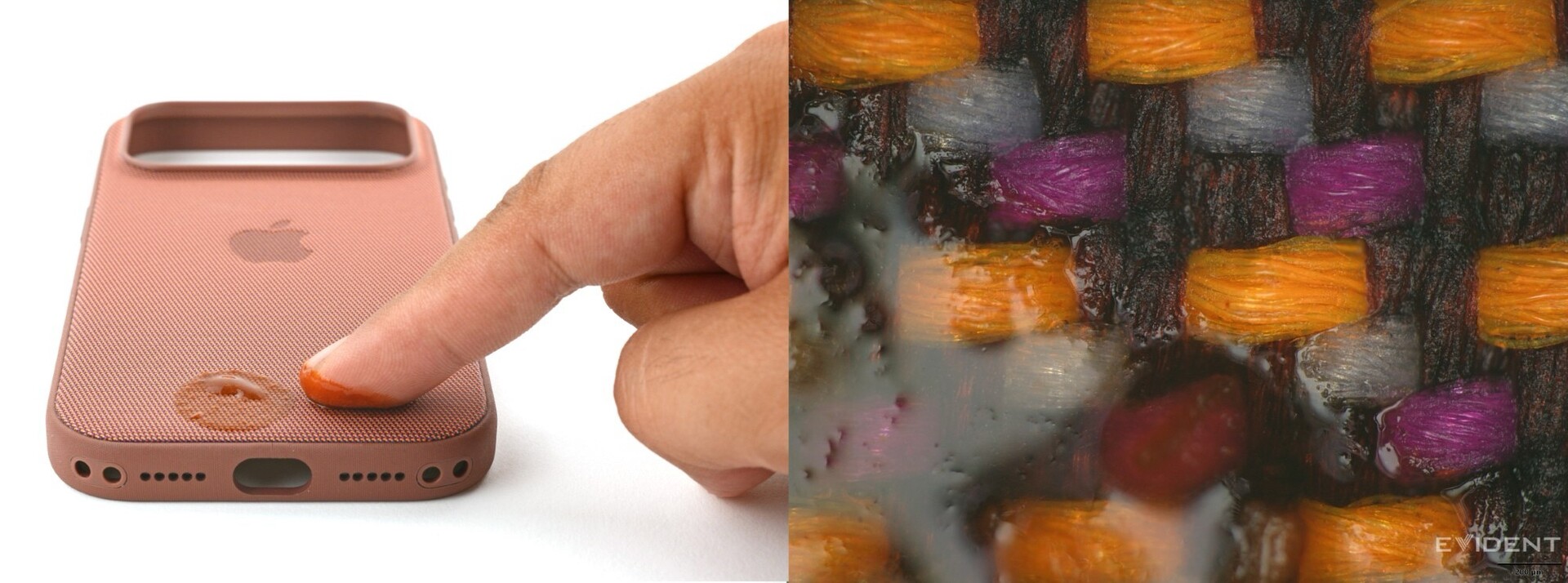 Os especialistas em desmontagem do iFixit testaram a resistência desse novo material contra líquidos, sujeira e arranhões. A impressão inicial é bastante positiva. Não importa se é café, azeite de oliva ou molho picante, o álcool remove completamente todos os resíduos. A capa também sobreviveu a um teste inicial de arranhões com uma chave sem danos visíveis.