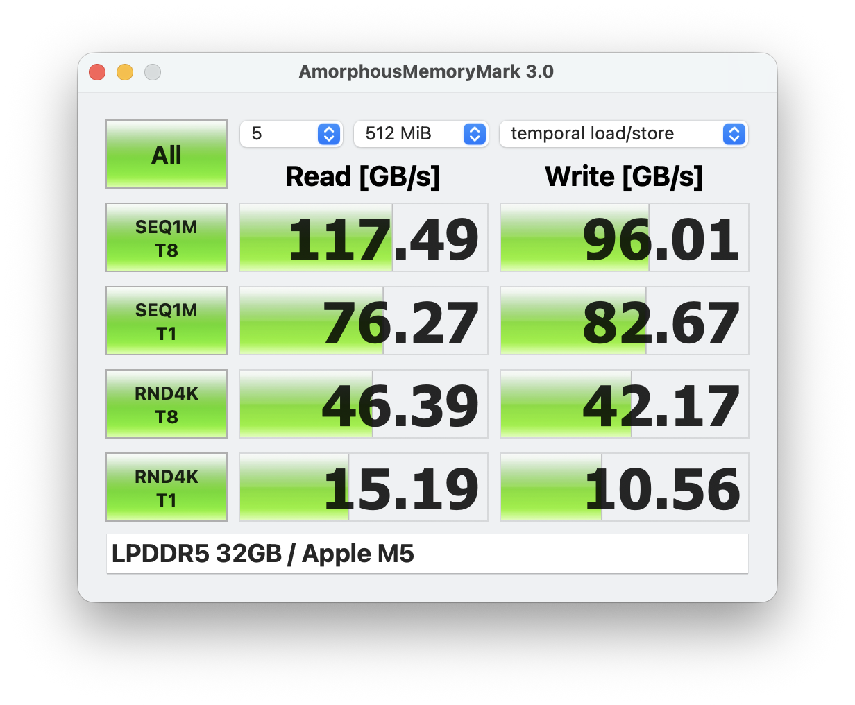 Desempenho - Apple M5 com GPU de 10 núcleos