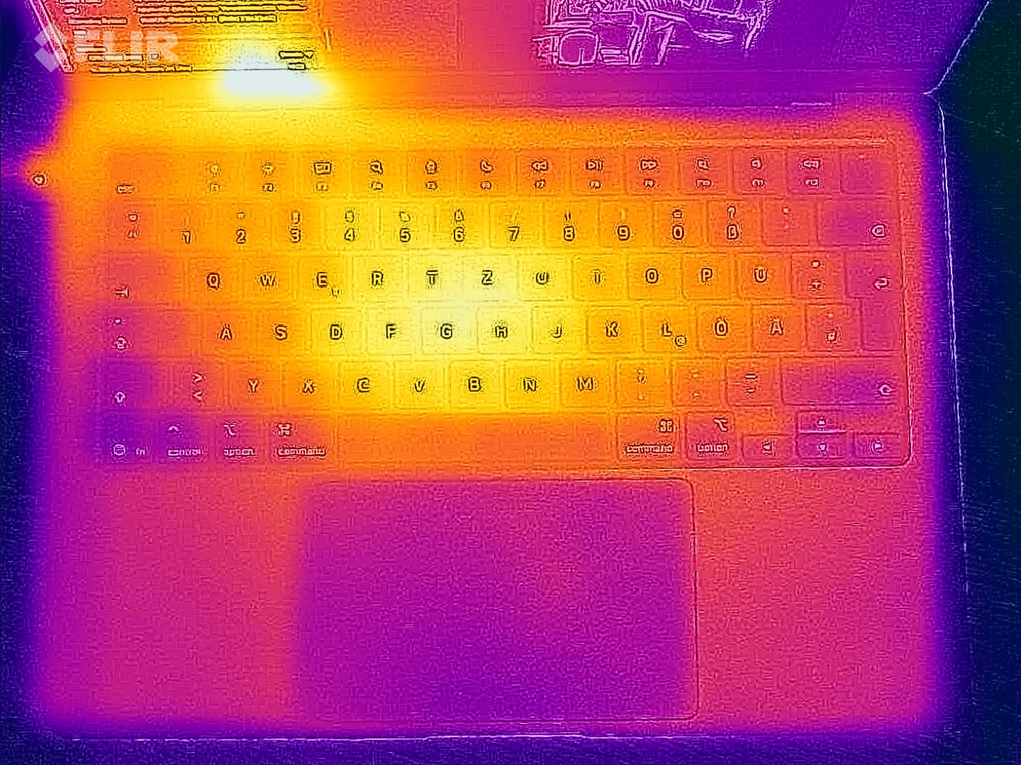 O consumo de energia ocioso do laptop foi ligeiramente reduzido em comparação com seu antecessor, e ~11 watts é um bom valor considerando seu alto brilho. Também não notamos nenhuma surpresa sob carga. Testamos o MacBook com o adaptador de energia de 70 watts, que foi suficiente. Entretanto, os compradores do novo MacBook Pro M5 devem observar que o site Apple agora vende o dispositivo sem um adaptador de energia; apenas um cabo MagSafe está incluído no escopo de entrega.