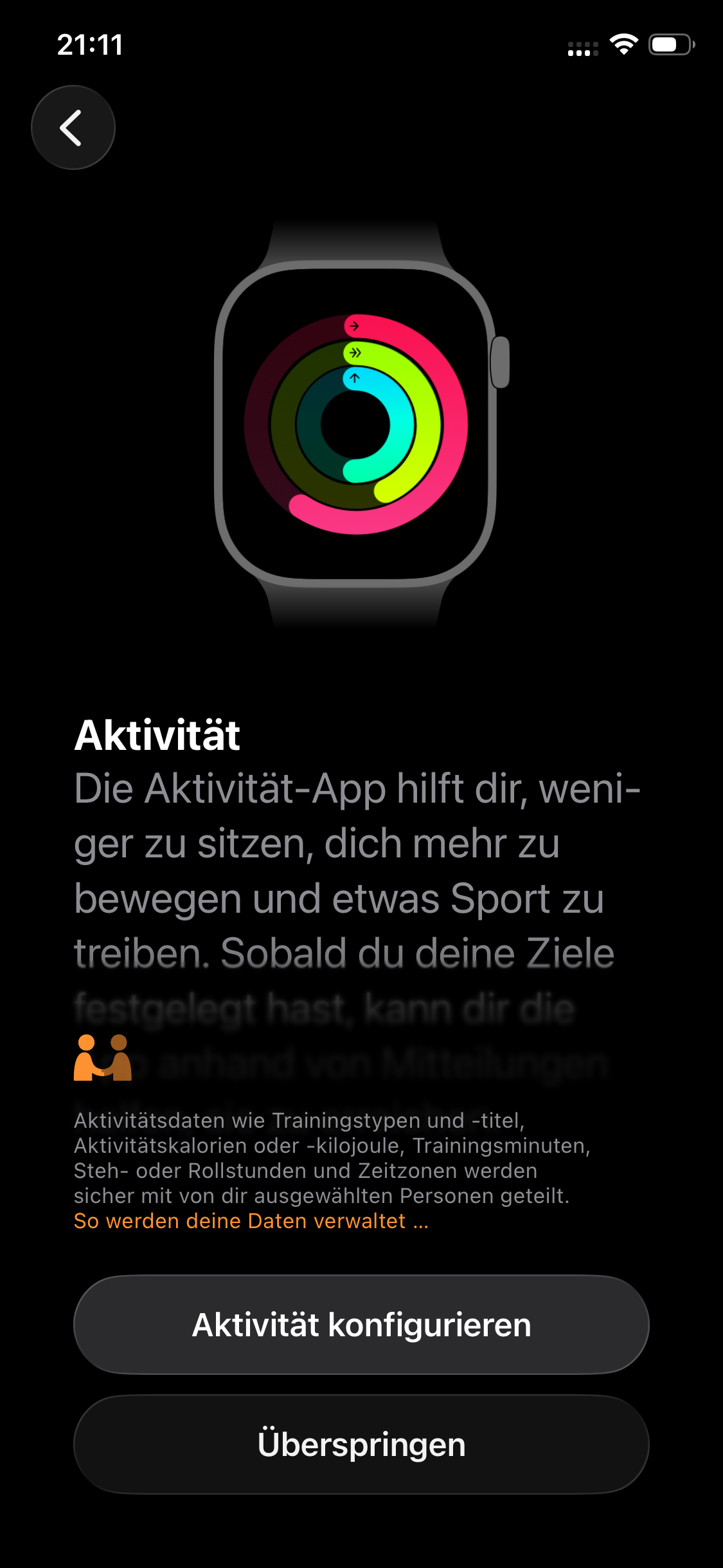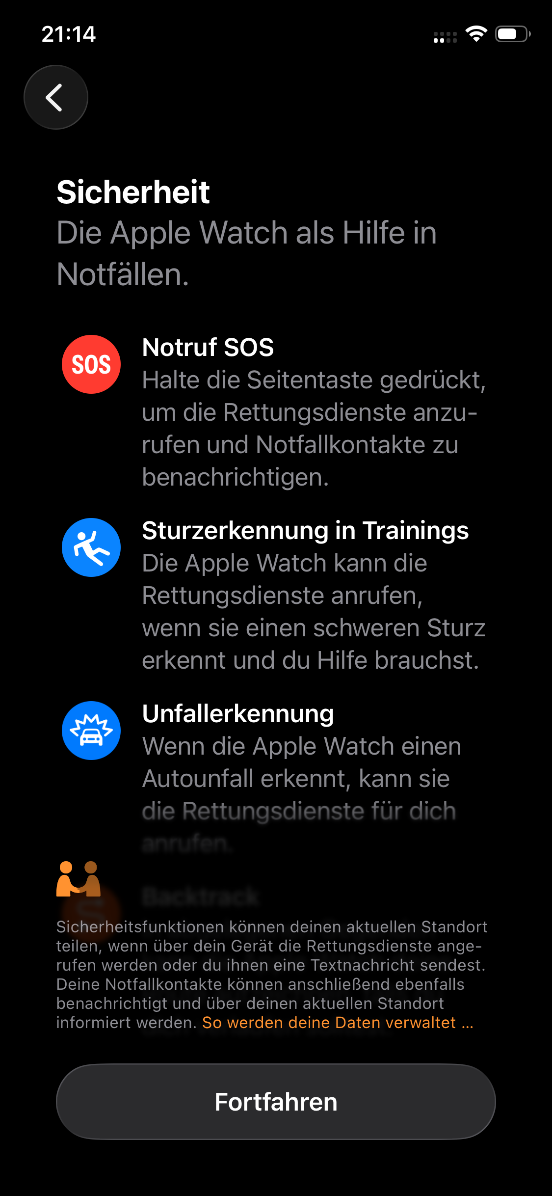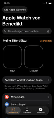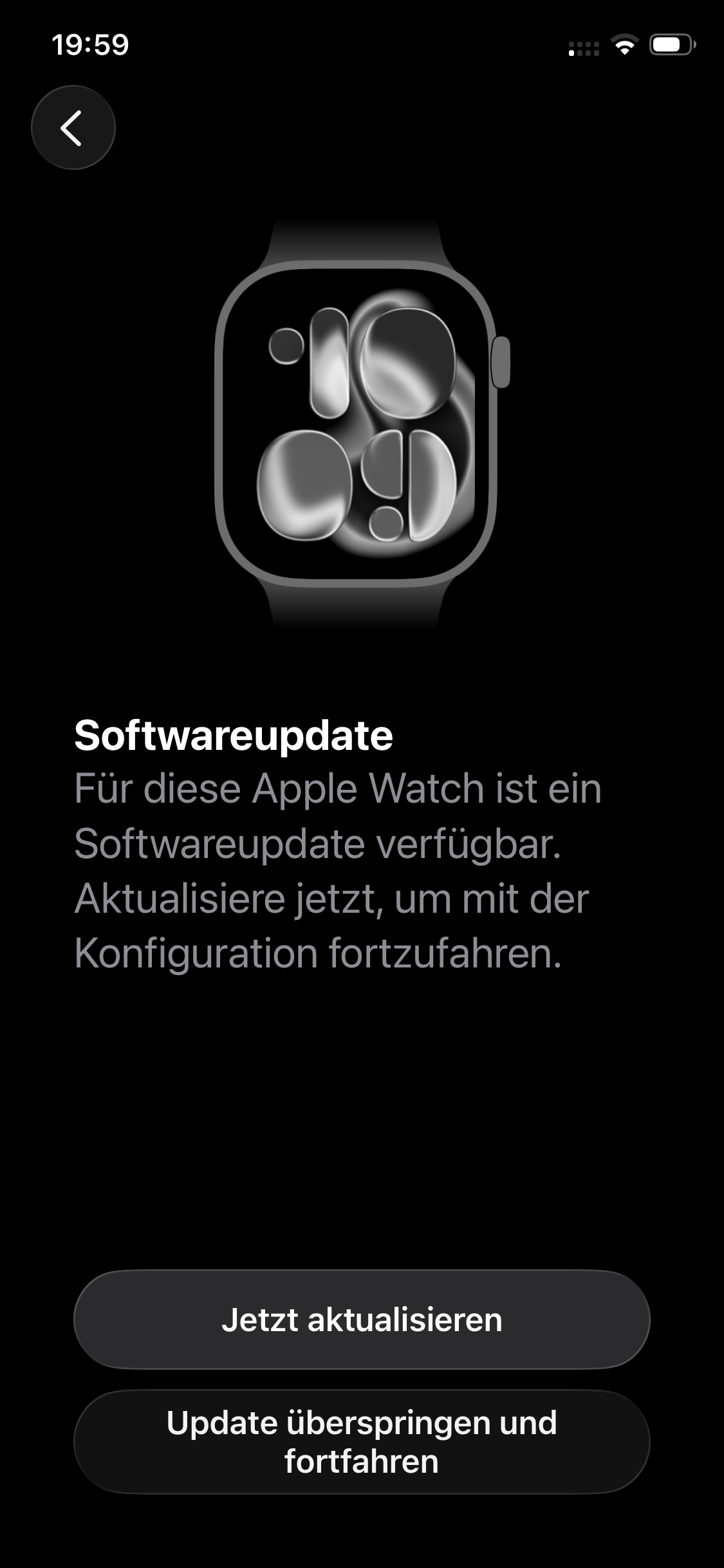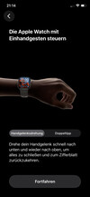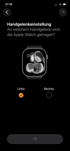 O relógio Apple só pode ser configurado e emparelhado com um iPhone. Após ligá-lo, o Watch aparece automaticamente como um pop-up em um iPhone próximo, tornando o processo de emparelhamento simples e intuitivo. A configuração é, em sua maior parte, autoexplicativa, embora leve algum tempo, pois muitas permissões precisam ser concedidas.